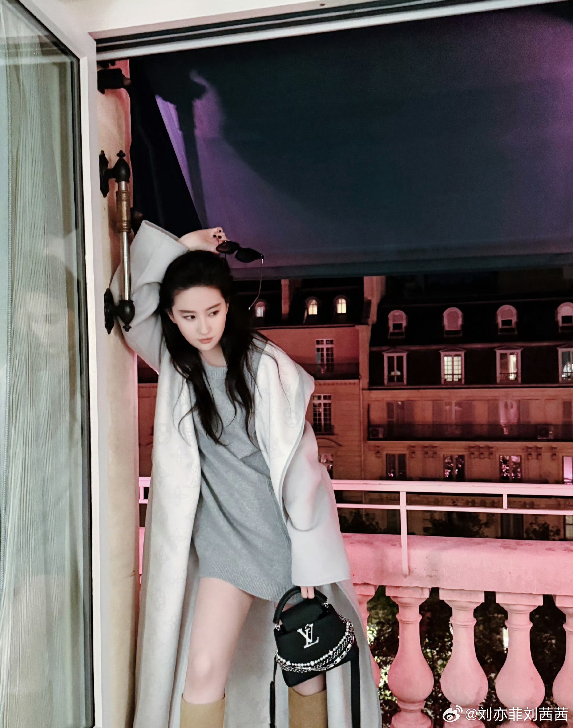刘亦菲巴黎露台照曝光,东方古典美碰撞西式摩登范,这氛围感简直绝了!在巴黎的夜晚,刘亦菲站在露台上,背后是亮着暖灯的法式建筑,整个场景仿佛一幅美丽的画卷。她身穿浅灰色针织连衣裙,外搭一件廓形宽松的白色毛呢大衣,大衣翻领处的暗纹设计低调又精致,尽显高级品味。她手持缀有银色链条装饰的黑色LV手袋,搭配墨镜与卡其色长靴,简约而不失时尚感。形象气质方面,刘亦菲的长发微卷散落,或单手插腰拎包,或轻抬手臂搭在栏杆上,慵懒又随性的姿态中透露出法式优雅。她的清冷五官与松弛的肢体语言相得益彰,将东方古典美与西式摩登范完美融合,既有豪门贵女的大气从容,又带着一丝不经意的飒爽,让人不禁为之倾倒。刘亦菲的这组巴黎露台照,真的是氛围感与时尚感兼具,让人眼前一亮!刘亦菲刘亦菲