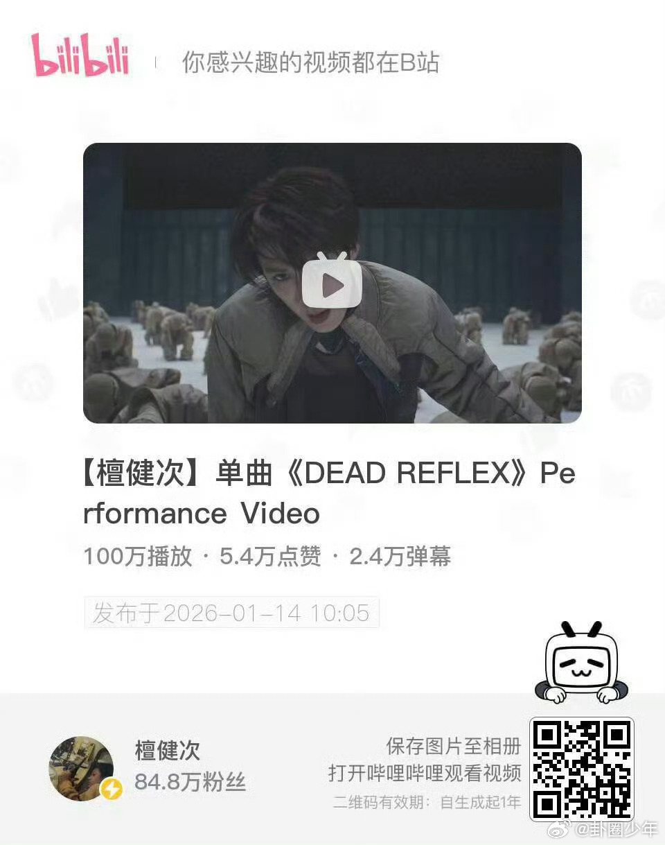 檀健次新歌上线一天破百万檀健次DEADREFLEX上线一天破百万 百万播放达成只是开始!檀健次深耕音乐的诚意藏不住,30年舞蹈功底造就的丝滑转场,加上极具深度的自我解构主题,这首作品活该刷屏全网!