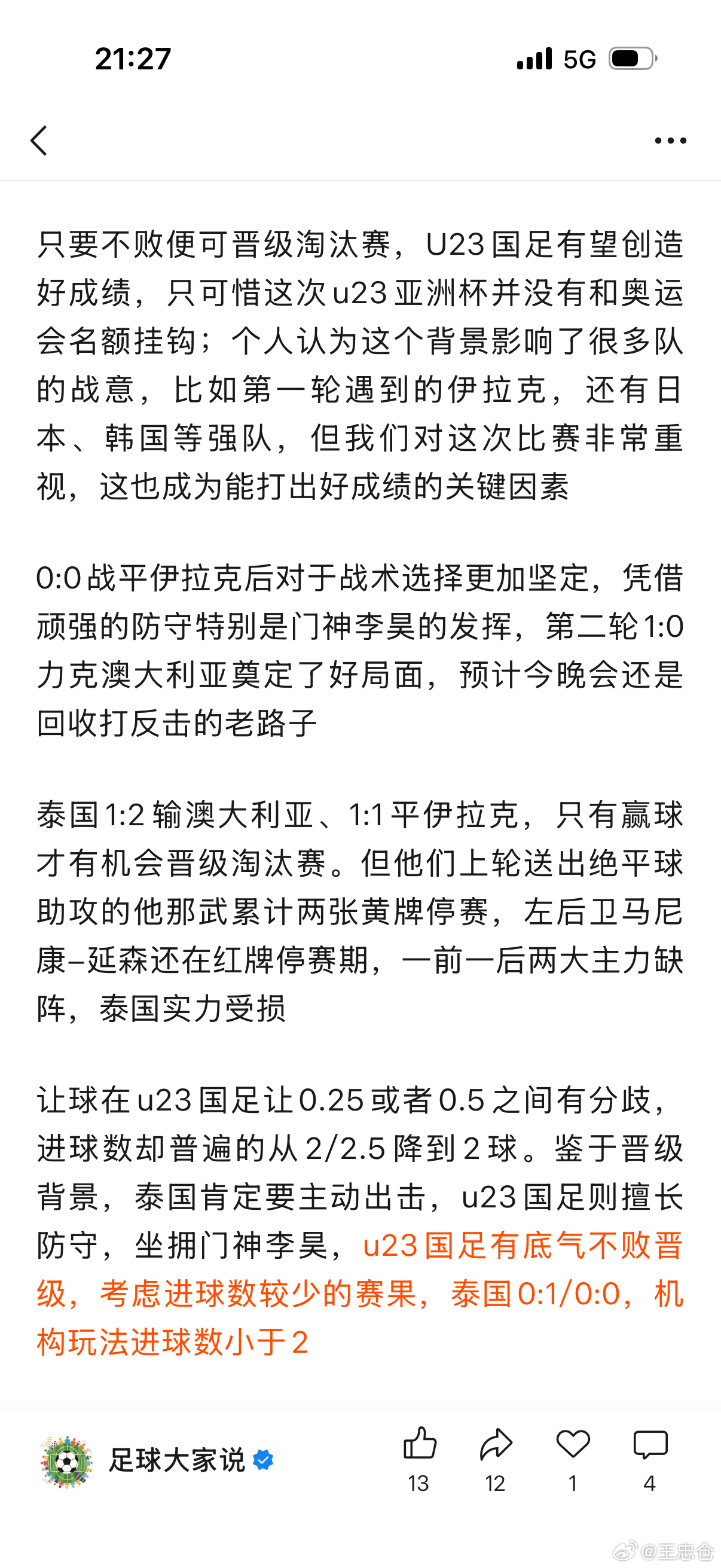 今天目前为止给自己打80分,u23国足猜对了、球踢美了、吃喝也到位了,附加场次能