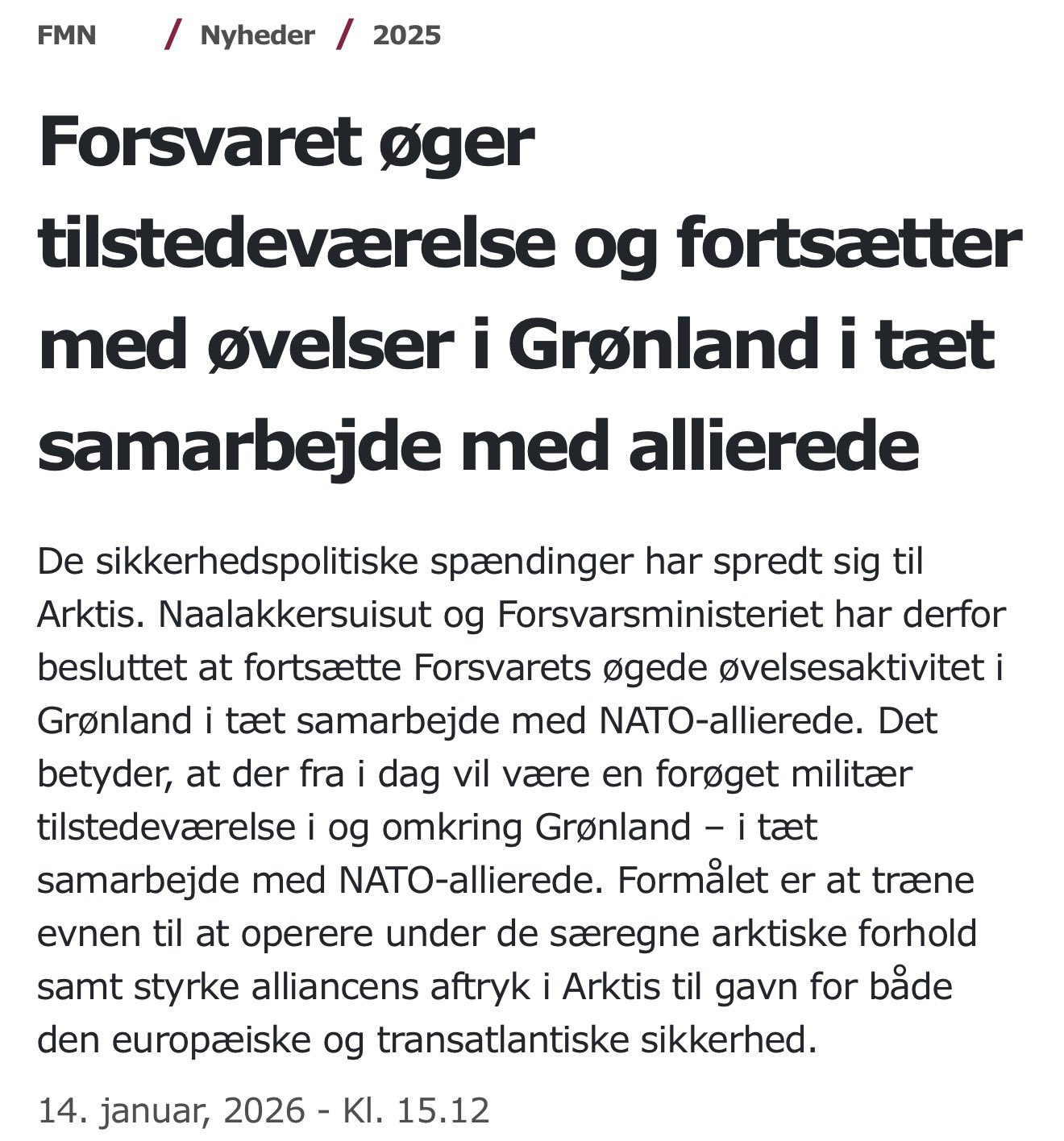 🔻丹麦国防部与格陵兰政府和其他北约盟国协调宣布,从今天开始,格陵兰及其周边地区将“加强军事部署”,包括丹麦武装部队的飞机、舰船和士兵,以及来自其他北约成员国的增援部队。🔻北约齐心协力,防备某邪恶大国的侵略,NATO最强大!👊🇩🇰🇬🇧🇫🇷🇩🇪🔥海外新鲜事热点现场