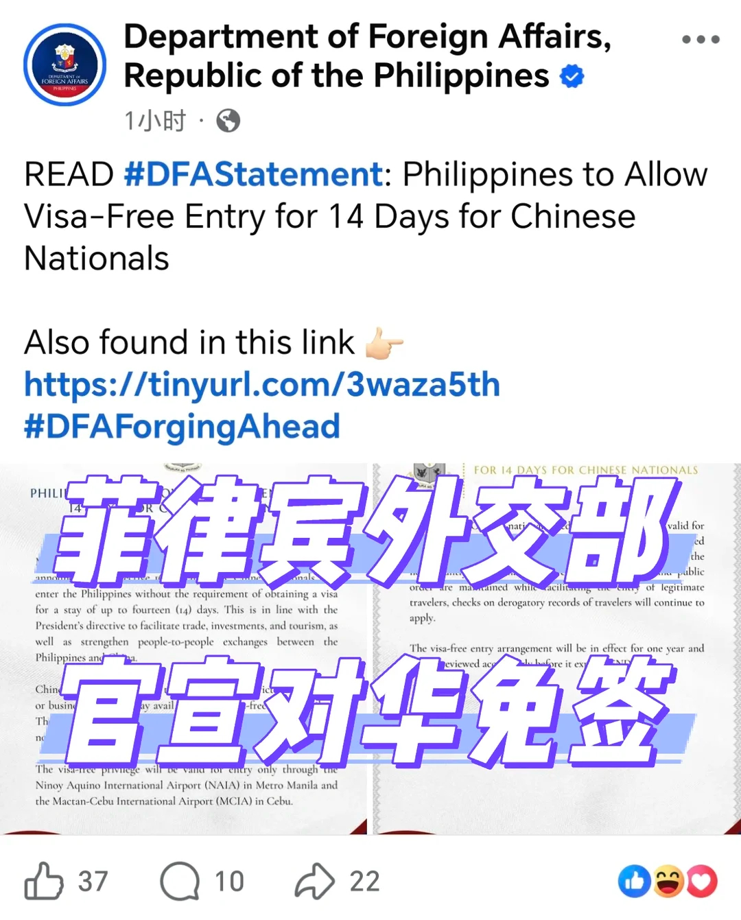菲律宾1月15日突然宣布,自1月16日起对华免签。中国公民持普通护照可免签入境菲律宾,最长停留14天,且不可延期。该政策仅限旅游或短期商务目的,禁止工作或长期居留,有效期一年(至2027年1月)。中菲这节骨眼,菲律宾这操作多少有些猝不及防,不过挺好,菲律宾对中国免签之后,等于东南亚11国全部对中国公民开放免签或落地签。菲律宾免签菲律宾宣布对华免签