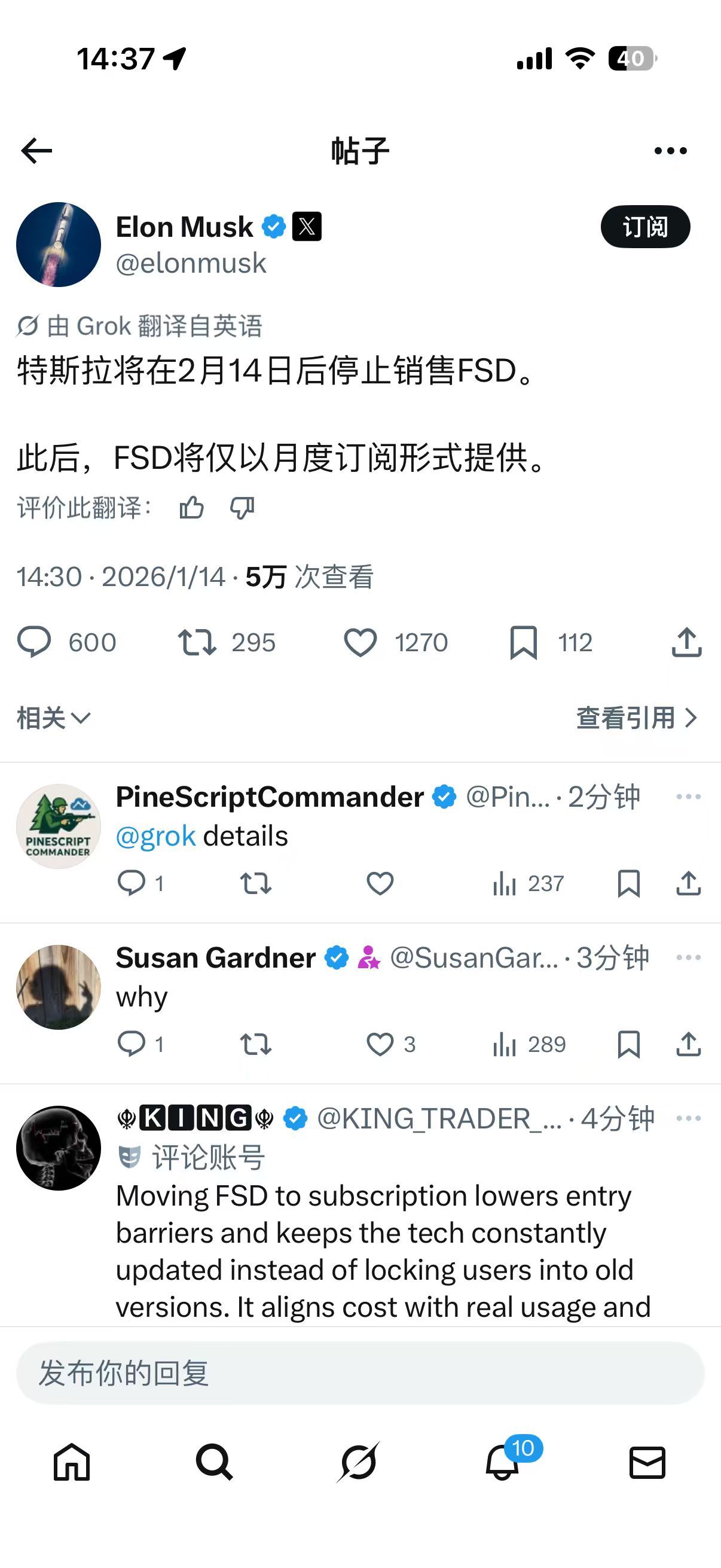 特斯拉将在2月14日之后停止销售FSD套件?意思是取消买断?转为月度订阅模式么?消息暂不确定,但是月度订阅是很香 啊