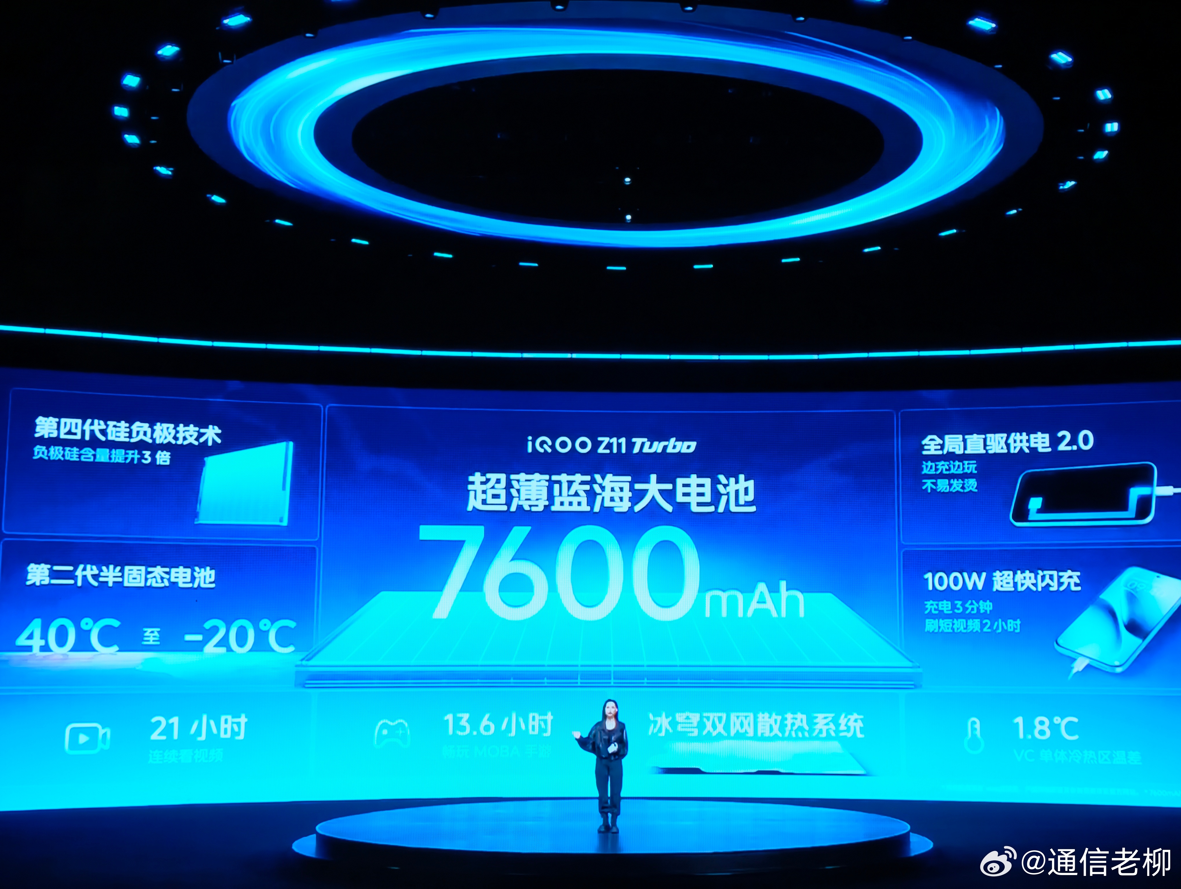 iQOO Z11 Turbo 7600毫安时大电池,100W闪充,冰穹双网散热系统,画面光追、屏幕光效,为游戏玩家把配置拉满了!