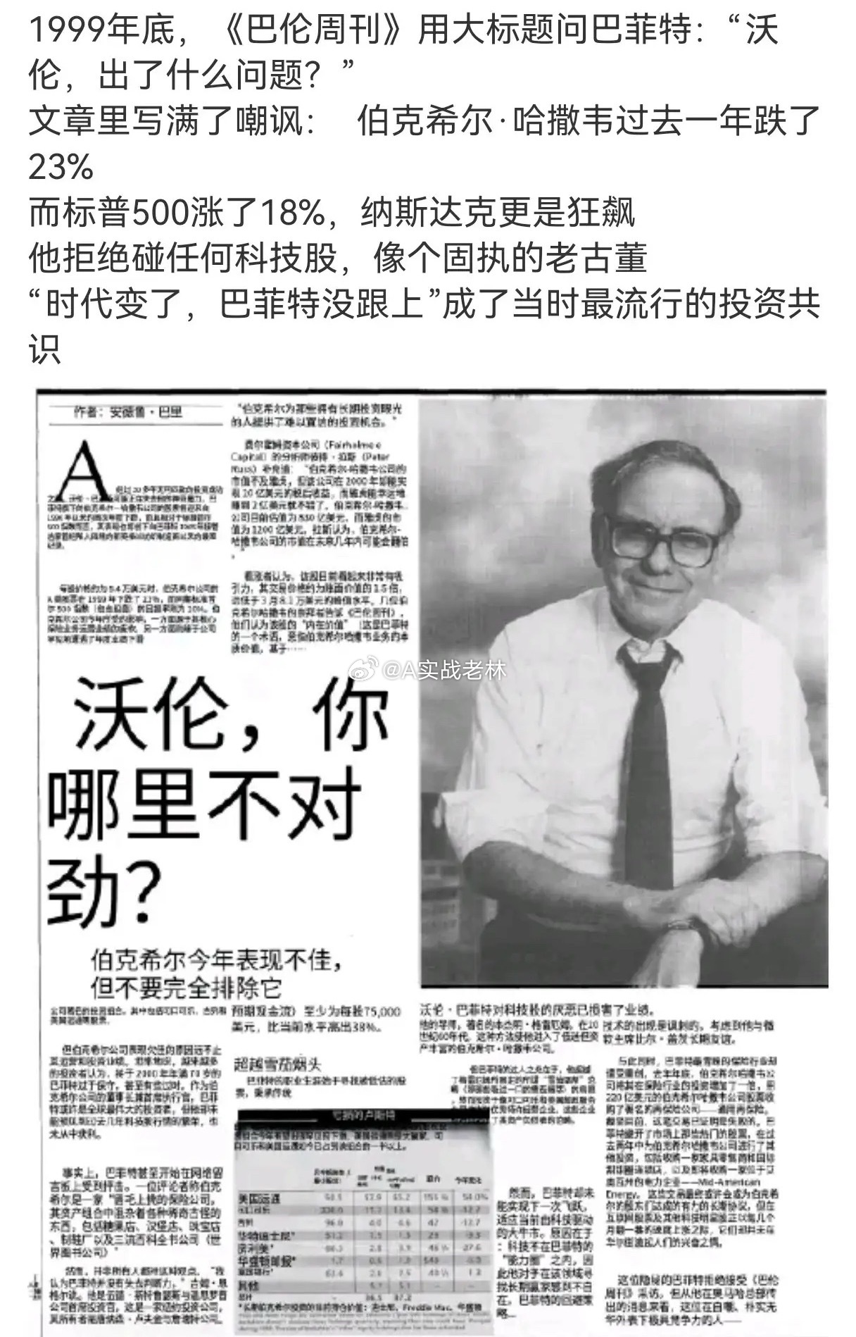 巴菲特也被嘲笑过!1999年,标普500涨了18%,纳斯达克更是涨了