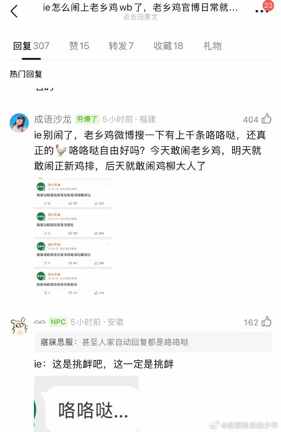 老乡鸡没事儿就咯咯哒咯咯哒发好几年,估计他都没想到被群假🐔记恨上了,罚她们以后不准吃鸡蛋,鸡肉,炸鸡,鸡汤……