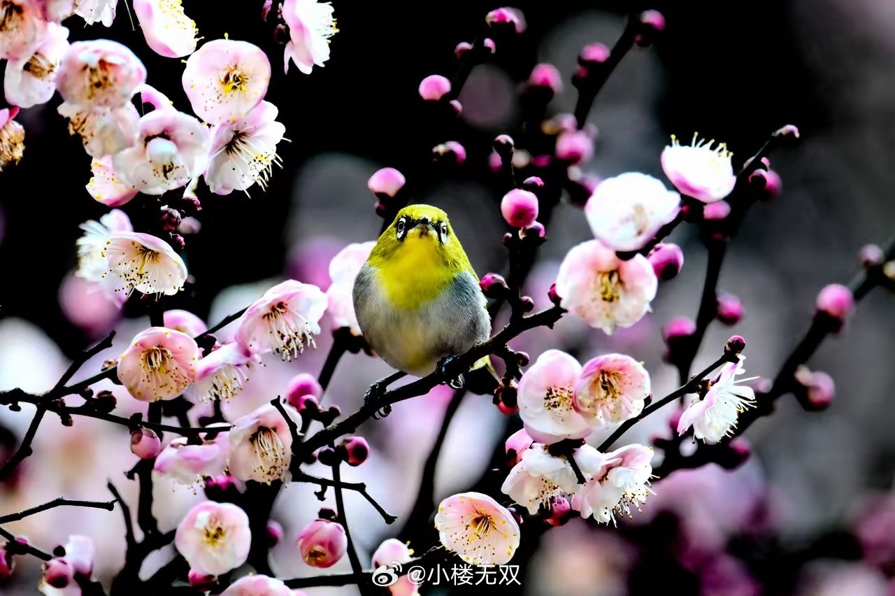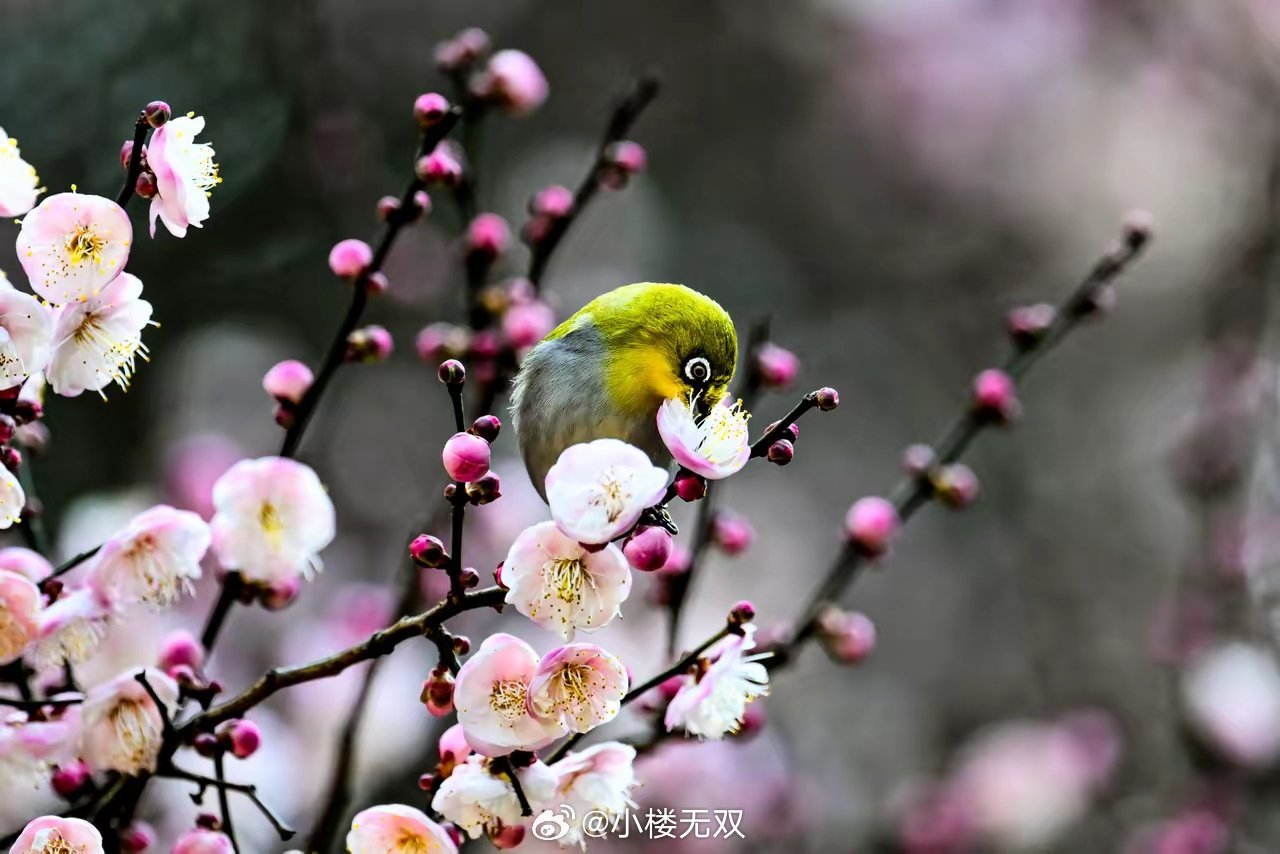 昆明金殿公园梅花盛开,花香飘逸,引来小鸟吃花蜜。(图;kmxb▪摄)