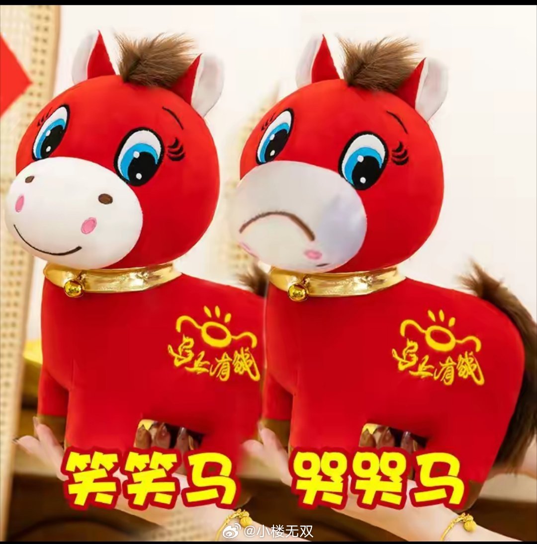 想买对马年吉祥物公仔挂车上看来看去还是喜欢这对(笑笑马,哭哭马),唯一的缺点就是没有挂扣。。。 哭哭马凭什么马倒成功