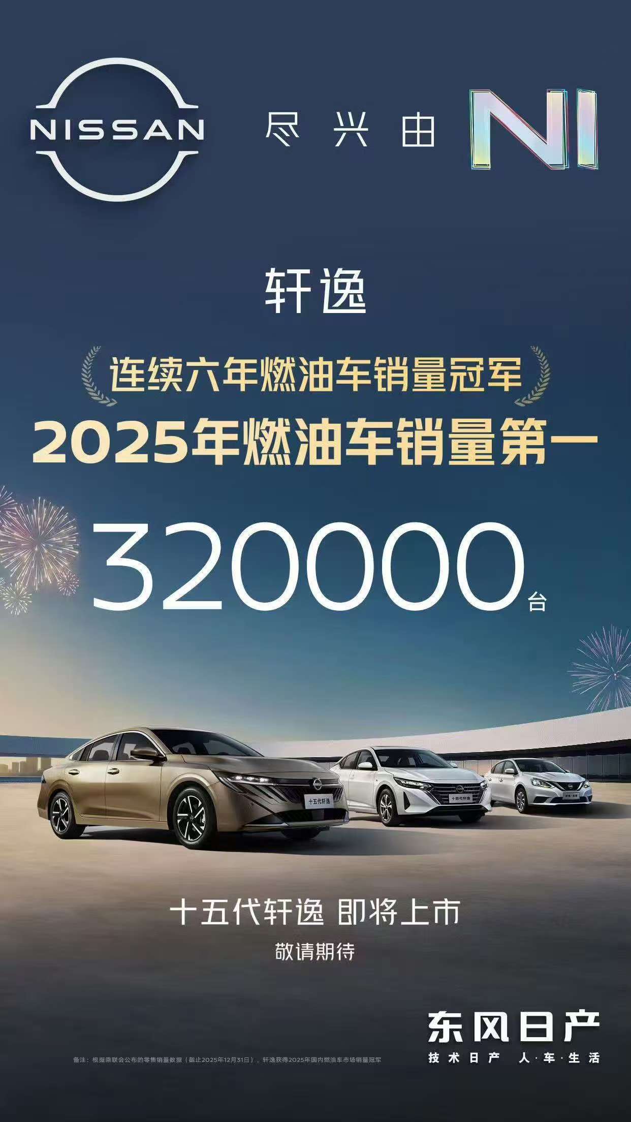 东风日产达成1700万销量东风日产 刚达成1700万总销量的里程碑,转头N6就以6822辆的成绩拿下合资插混销冠,直接把沃尔沃、别克甩在身后,这新人王的气场也太足了!更震撼的是天籁鸿蒙座舱版,12月销量直接从3700台翻到7494台,谁能想到燃油车玩智能,居然能玩出这种天花板操作?还有轩逸这位老大哥,连续六年燃油车销冠,2025年又卖了320万台拿第一,十五代还没上市就已经自带流量buff。从新能源到燃油车,从总销量到细分市场全面开花!N6斩获合资插混销量第一天籁斩获鸿蒙座舱轿车销量第一