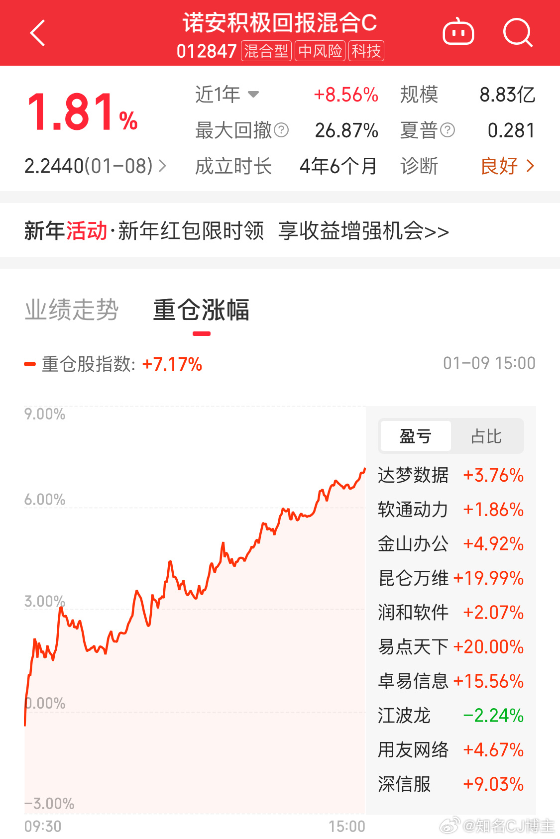 1月13日神剑股份早盘跌停,我在它从跌停拉升到最高点涨2.85%时进了场。今天是