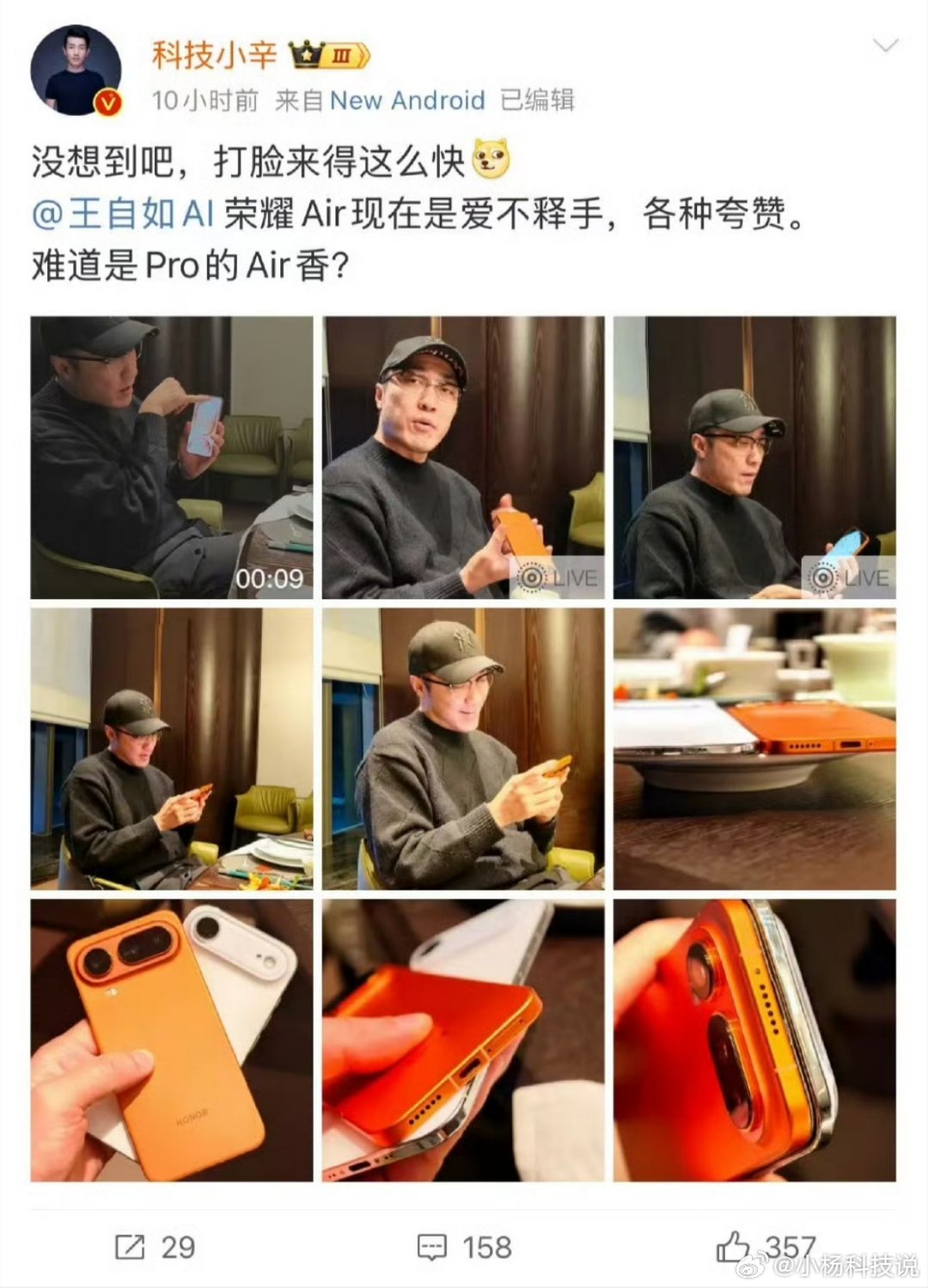 王自如回应国产安卓做不好Air王自如回应被打脸王自如之前说过国产手机做不好Air,并不看好荣耀的Air。但是当王自如上手荣耀Magic8 Pro Air后,确实被荣耀这款产品惊喜到了,说产品力好强,爱不释手,有点被打脸了哈哈哈哈。越来越期待荣耀Magic8 Pro Air的发布了!