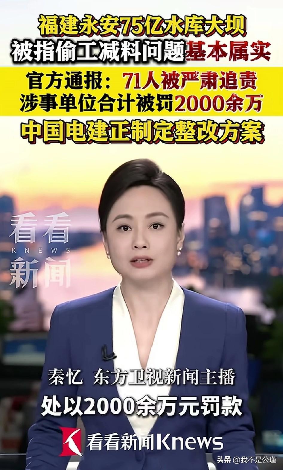 75亿的水坝,这么大的工程出了点问题。 偷工减料!!! 然后相关部门做出了相应的处罚,涉事单位交了2000万罚款。另71人被严肃追责,没错,是严肃追责。至于多严肃,要看后续的报道了。 这么大的工程,这帮人简直没有一点底线,偷工减料这事,看来是没少干啊。 除了这一个玻案例,不知道涉事单位干过的其它工程有没有也存在此类的情况,这只有他们知道了。 就问你服不服,2000万罚款。工程质量问题 施工偷工减料 工程真相 工程质量风险 水利工程标准 工程责任追究 建设工程质量