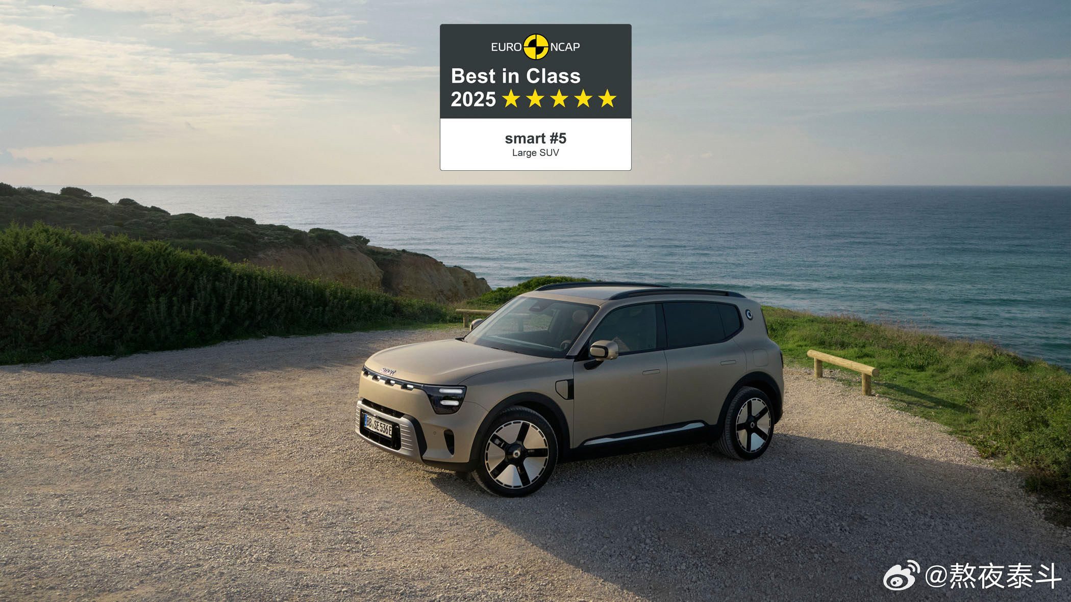 smart 5号 被评为2025年最安全的大型SUV,获得欧洲NCAP“同类最佳”奖smart 5号 在2025年的大型suv测试中获得了最高的整体安全得分,儿童乘员保护得分为93%,安全辅助得分为92%,弱势道路使用者保护得分为84%,成人乘员保护得分为88%。smart 5号 进行了广泛的测试计划,涉及超过110辆碰撞测试车辆,130个专门的安全实验,以及数百万公里的实际测试,符合欧洲NCAP,C-NCAP和C-IASI。 大v聊车