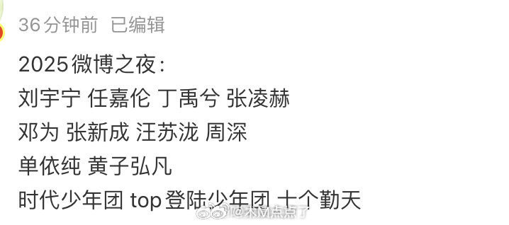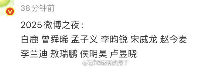 微博之夜的嘉宾真的好多啊,还得是微博的排面大🙉肖战 王一博 杨幂 迪丽热巴 杨紫辛芷蕾 刘诗诗 倪妮 陈都灵 田曦薇 关晓彤王楚然 娜扎 宋轶白鹿 曾舜晞 孟子义 李昀锐 宋威龙 赵今麦李兰迪 敖瑞鹏 侯明昊 卢昱晓刘宇宁 任嘉伦 丁禹兮 张凌赫邓为 张新成 汪苏泷 周深 单依纯 黄子弘凡时代少年团 top登陆少年团 十个勤天微博之夜