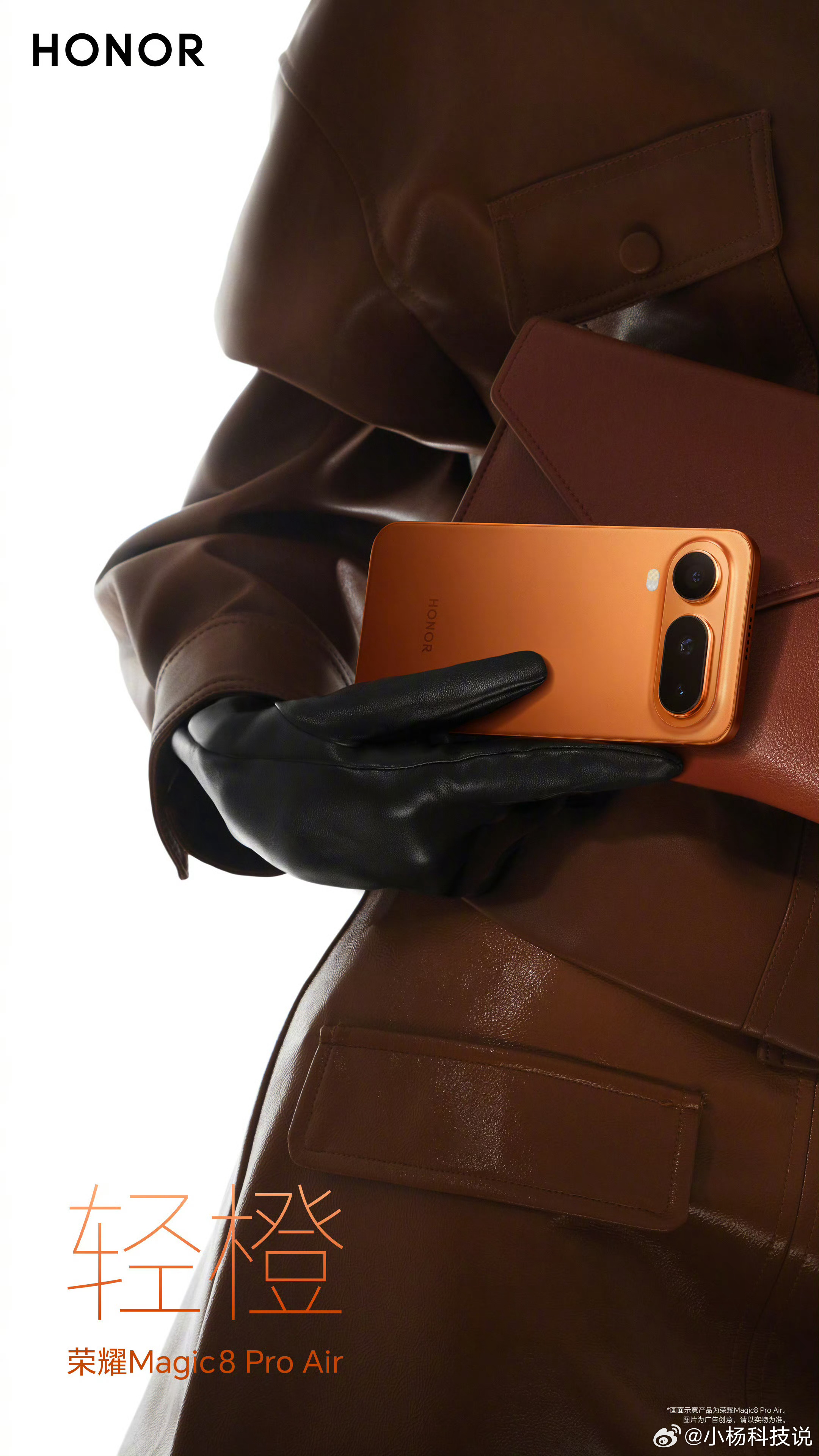 荣耀Magic8ProAir带来轻橙、仙紫、羽白、影黑质感四色!你喜欢哪个颜