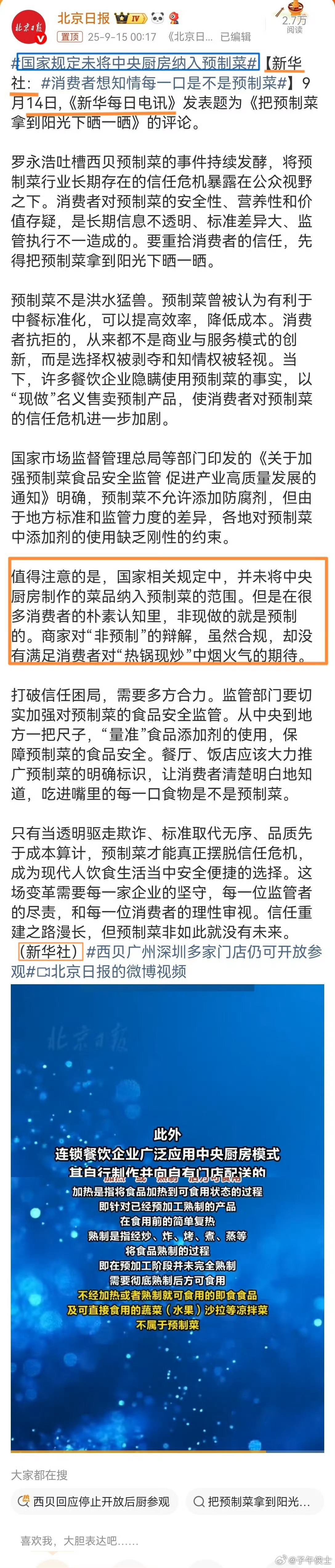 西贝闭店102家网友喊话罗永浩 西贝拼了125 天,损失了五六个亿,但最终,却不得不宣布一次性关闭102家门店(就这还不算此前零星关闭的那些门店),不得不遣散4000多名员工…。西贝尽力了,但结果却很悲壮。看了西贝老板贾国龙发在朋友圈的那些话,説真,我心里不是个滋味,我不像别人那样看热闹不嫌事大,更不会像别人那样幸灾乐祸,我只感觉到悲凉。一个并未违法违规,经营得好好的一家全国大型连锁企业,因网络黑嘴的诋毁和抹黑,而陷入危机,想自救,却无力回天,无可奈何花落去…。西贝输给了谁,输给了罗永浩吗,我不这么认为,我认为是输给了这个是非不分,黑白不明的舆论场,输给了不作为的有关部门。西贝风波,说到底还是预制菜的问题。贾国龙认为按照国家有关定义,西贝不存在预制菜,而大众认知,在罗永浩的误导下,却认为西贝就是有预制菜,这是所有纷争的根源。那么,这个时候,国家有关部门就应该站出来,做一个旗帜鲜明的表态,要么贾国龙对,支持贾国龙,要么罗永浩对,支持罗永浩。然而,包括国社在内的央媒,在这个问题上,态度却是模糊的,既扭扭捏捏的说西贝不属于预制菜,又不想得罪罗永浩,不想得罪被罗永浩煽动起来的网民,于是,就模棱两可,打起了太极…。我还是那句话,企业如果有错,该收拾就收拾,该罚就罚,必要时罚个倾家荡产,也是必须的,但,如果企业没过错,还是要尽力保护的,不能让保护企业,保护民营企业,成为一句空话。一个网络流氓,就可以干倒一家知名大型企业,这还是法治社会吗,有关部门有点作为好不好?今天是西贝,明天是谁?贾国龙说拼了整整125天
