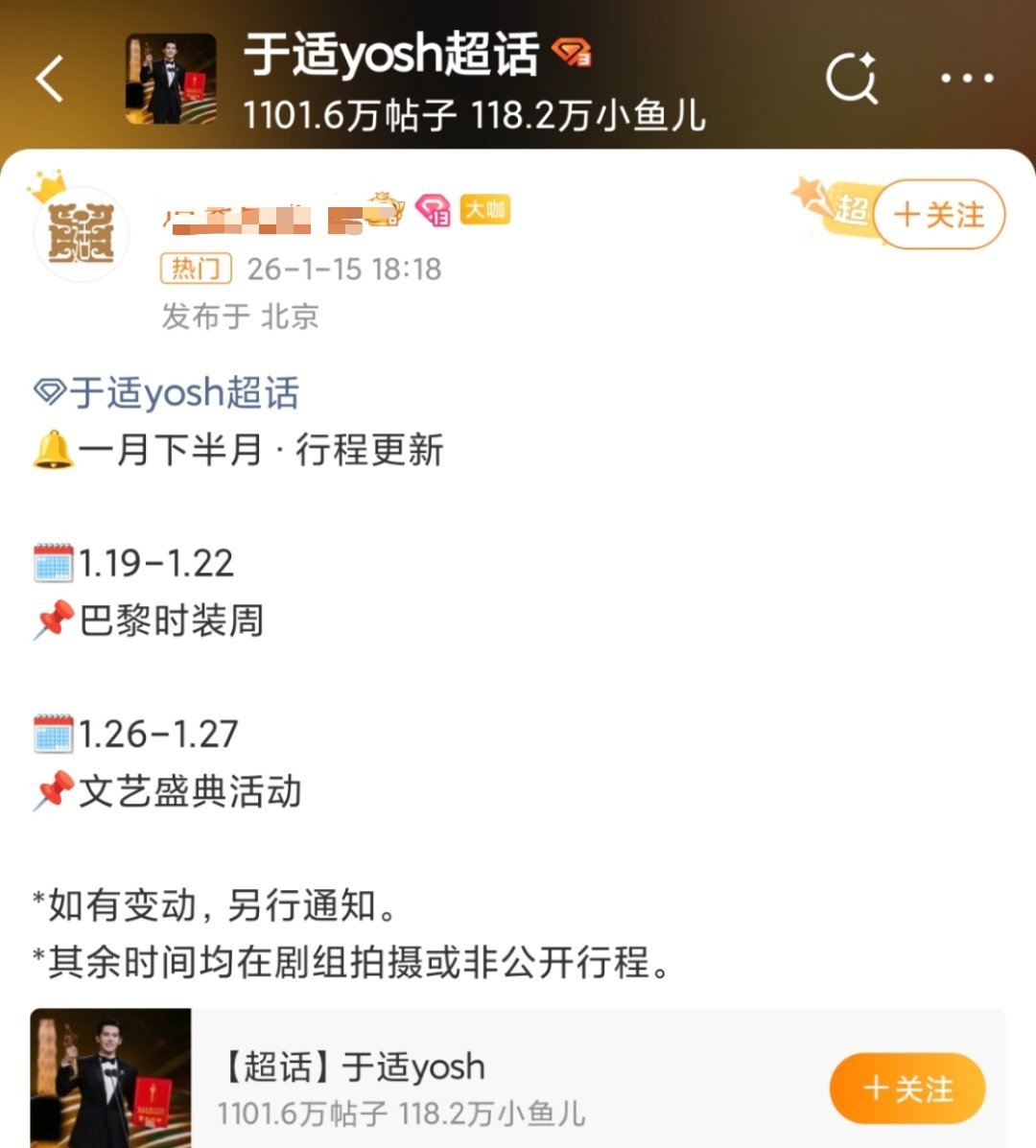 于适 确定参加巴黎时装周,月底还要参加文艺盛典活动