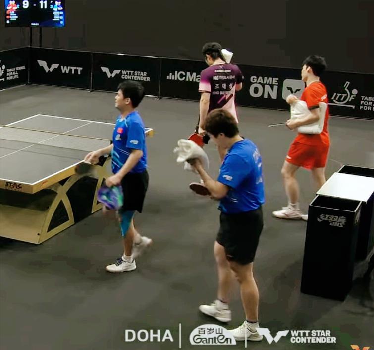 林诗栋/梁靖崑 2:3 爆冷输给赵大成/张禹珍, 张禹珍又一次嗷嗷叫, 石头报仇失败。 其实林诗栋/梁靖崑两个右手劣势还是很明显, 赵大成/张禹珍都是两个老狐狸了, 看的很明显。 不过林诗栋/梁靖崑单板质量还是很高, 决胜局能打到9:9平, 已经非常不错了, 最后9:11惜败。 只输了2分, 石头下次和大头组队吧, 你们肯定能赢。