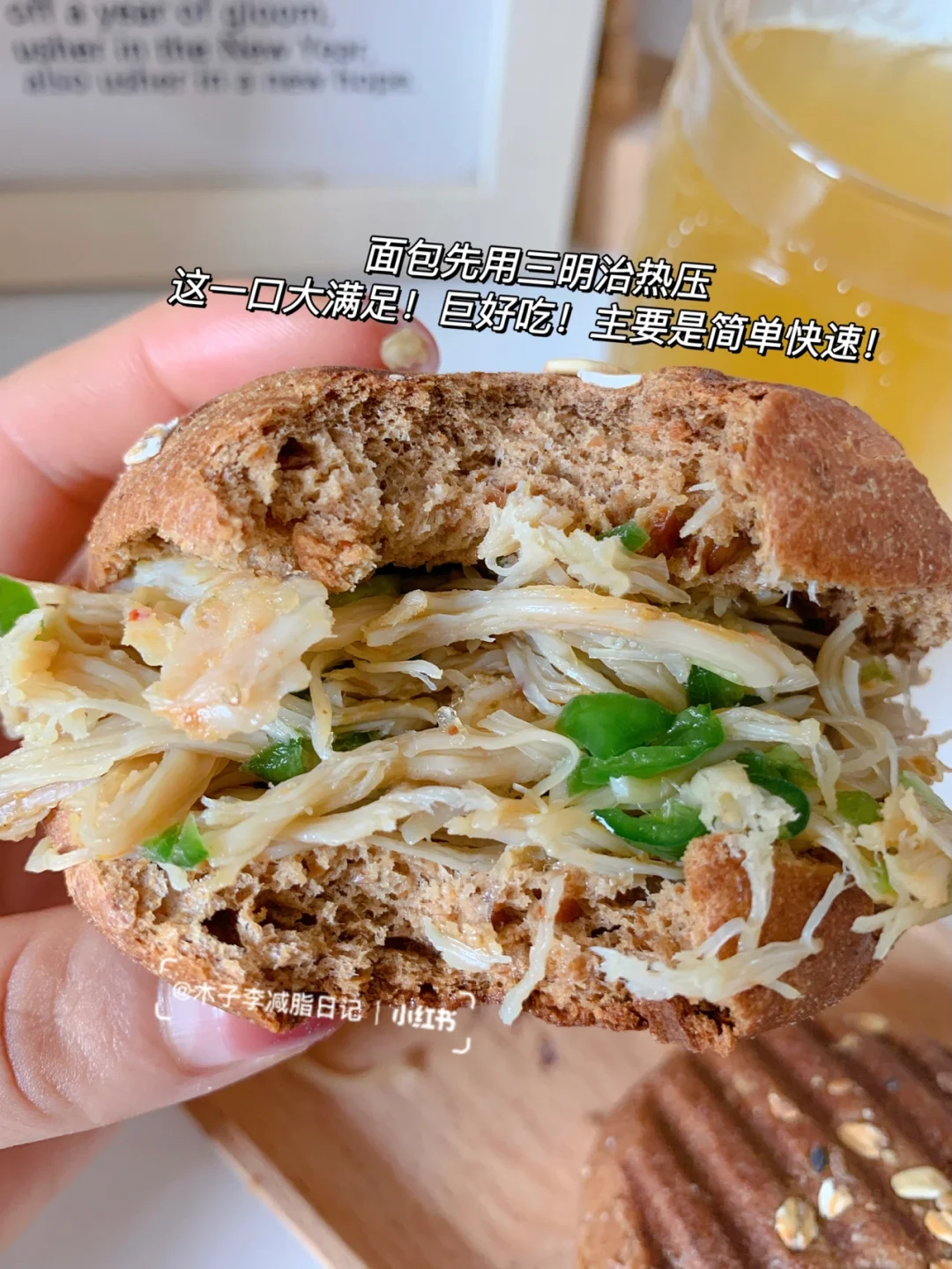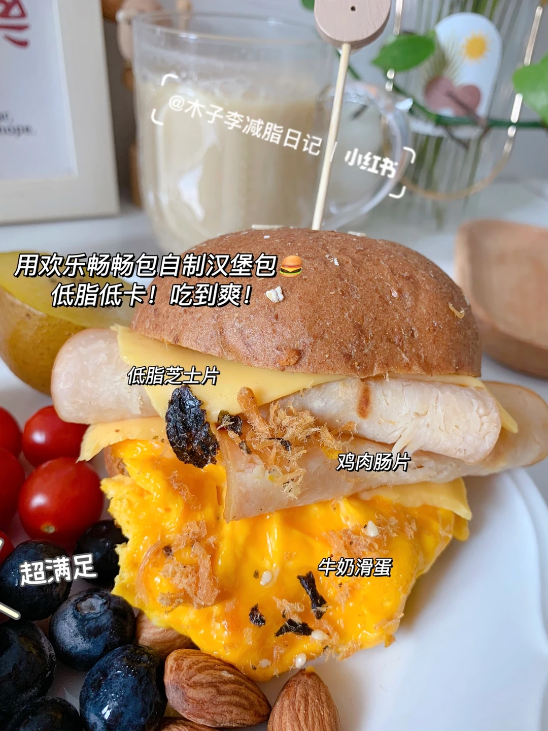 📣:用介个欢乐畅畅包做汉堡和肉夹馍!真滴太绝了!面包小小一个~不用担心吃不完浪费!面包吃着很有韧劲软软弹弹的!介个是没有添加面粉的!高蛋白~高膳食纤维!拿来做汉堡🍔三明治很适合!减脂期我太爱吃面包了!囤了好多!