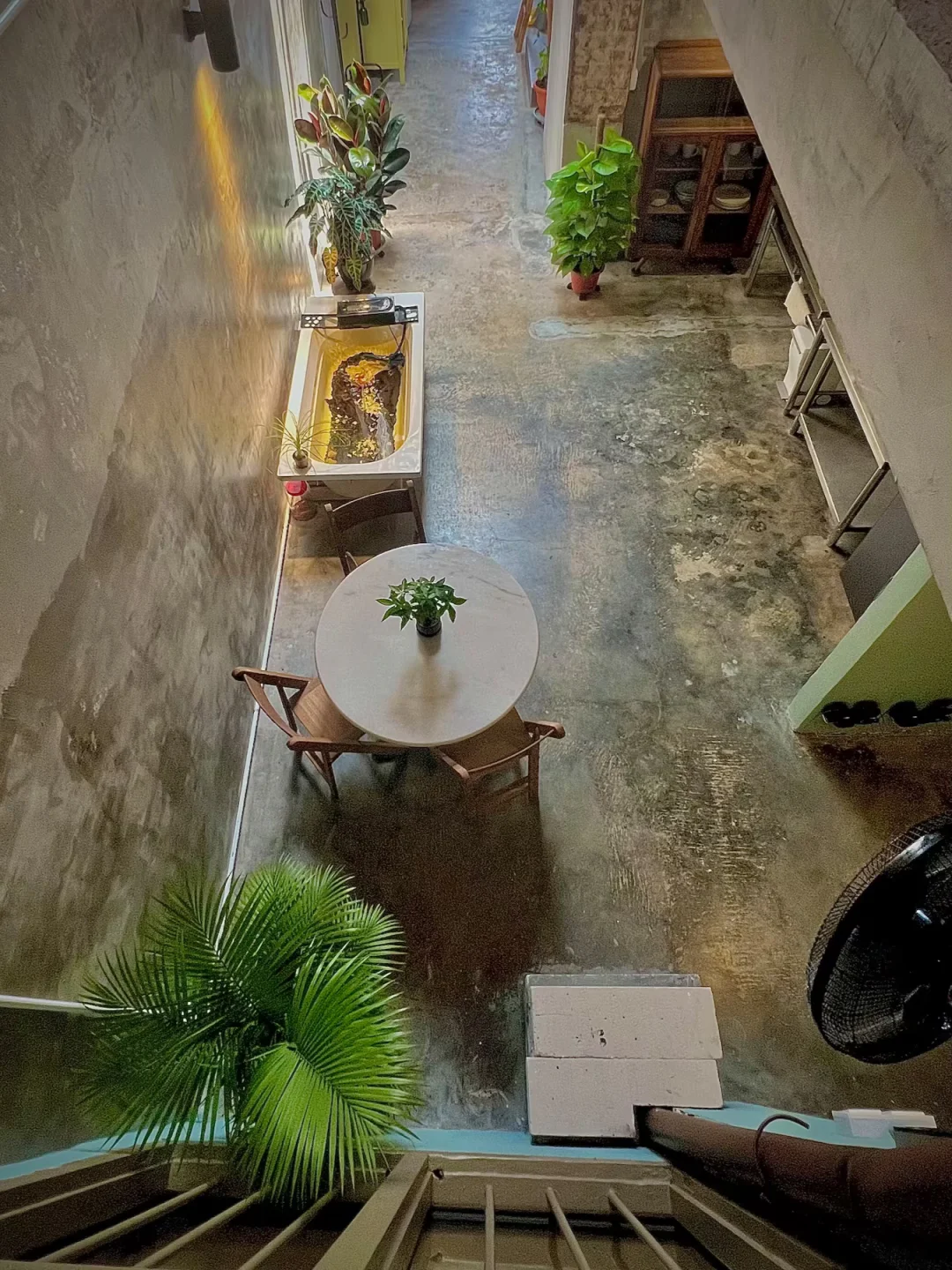 3.空气井+锦鲤池:升级了店屋标配的天井,更通风更舒适,废弃浴缸变成锦鲤鱼塘,拍照超出片