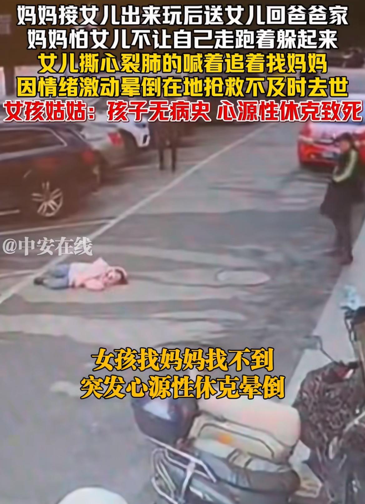 心碎成渣,倒地身亡! 这事儿看得我心口堵得发慌,太痛心了! 湖南女孩父母离异后跟着爸爸过, 妈妈接她玩完送回家,竟因为怕女儿哭闹挽留,转身就跑着躲了起来,殊不知这一躲,竟是天人永隔。女孩发现妈妈不见,撕心裂肺哭喊着追赶,满心都是对妈妈的不舍与恐慌,情绪激动到极致直接晕倒在地,最终因抢救不及时永远离开了,这份遗憾这辈子都没法弥补。 我始终觉得,离异从来不是切断亲情的理由,父母的逃避才是伤害孩子最深的刀,妈妈以为跑开能避免孩子纠缠,却不懂离异后的孩子本就极度缺乏安全感,你的突然消失,在她眼里就是被再次抛弃。 比起悄悄躲开,好好跟孩子告别、温柔安抚她的情绪,告诉她妈妈会一直爱她、还会再来看她,才是最该做的事。别让你的“怕麻烦”,变成压垮孩子的最后一根稻草,也别让一时的逃避,换来一辈子的悔恨,孩子要的从来不是多好的物质,而是确定的爱和不被丢下的安全感。 你觉得离异后父母该怎么减少对孩子的伤害?评论区说说你的看法~