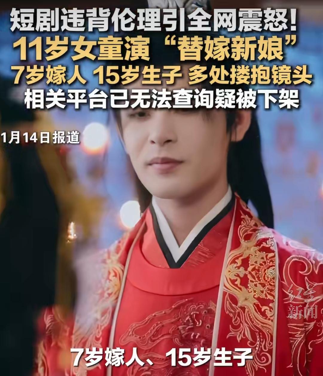 为了流量连孩子都拿来当“工具人”,把低俗当卖点,把违规当噱头,这样的乱象啥时候能停? 11岁女童演7岁替嫁、15岁生子,这剧本到底在挑战什么?广电总局刚明令禁止未成年人演成人化剧情,这部剧就顶风上线,还和成年男演员有搂抱互动,暗藏“养成系”隐喻,简直离谱! 更讽刺的是平台说有“多轮审核”,可这种触碰法律底线的内容怎么能上架?之前“一胎99个”的荒诞短剧刚下架,现在又来突破伦理的操作,短剧的底线到底在哪? 你能接受用未成年人博眼球的操作吗?短剧 底线 怎样才能给孩子一个好的教育