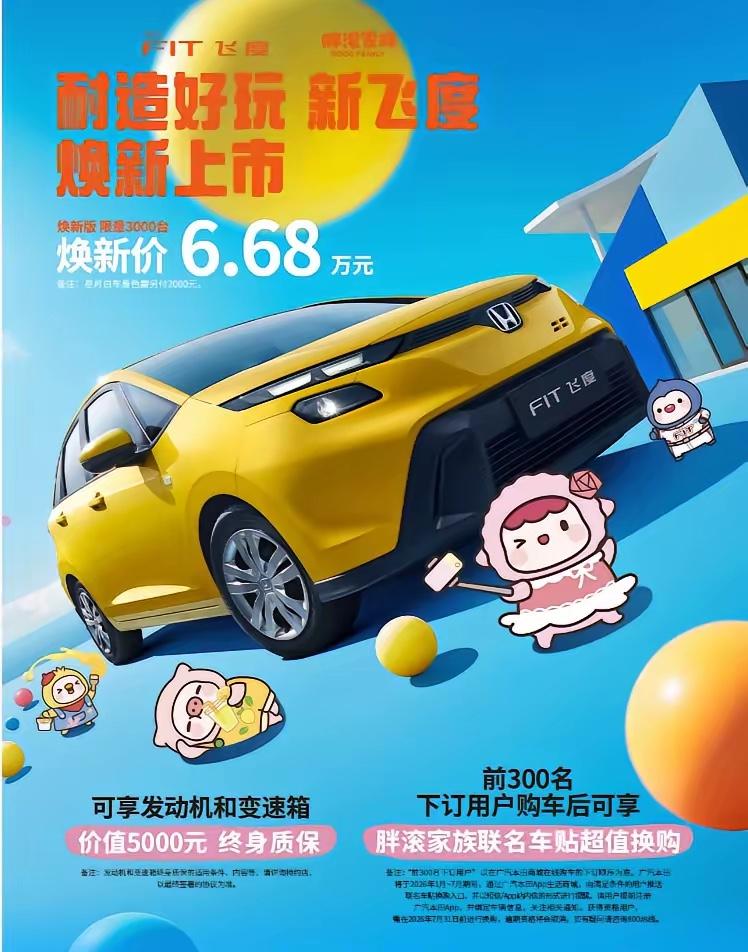26新飞度价格定了,6.68w!!! 一个配置一口价,限3000台 10.1寸屏幕,有! 黄白蓝三色,有! 全景式挡风玻璃,有! 1.5L地球梦科技发动机,有! 发动机、变速箱终身质保,前300名还有超值换购车衣。 有一说一,虽然我经常黑日系,但这车适合那种外地打工的农村人,平常用车时间不多,只有假期和旅游需要开车。终身发动机变速箱质保,能落地六万多真不错。