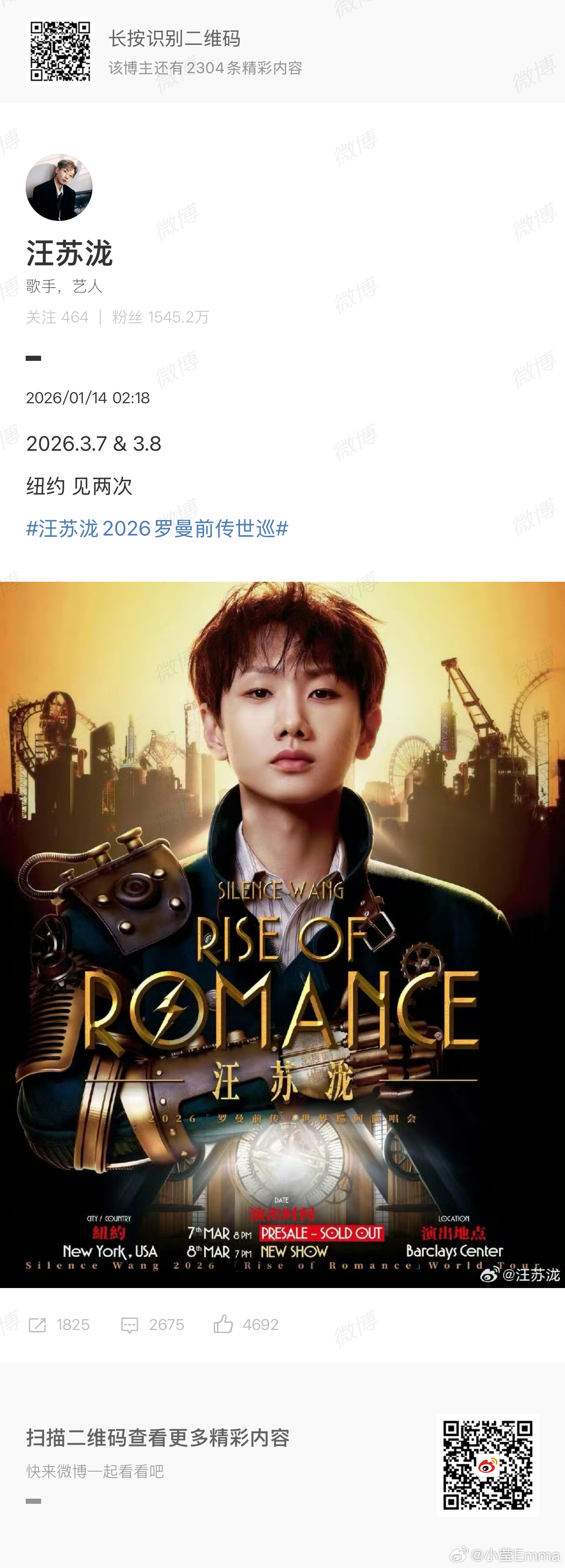汪苏泷世巡纽约站开两场纽约泷粉赢麻了!两场演唱会是谁又幸福了