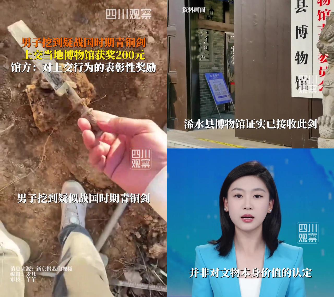 湖北浠水毕先生工地挖了把疑似战国青铜剑,上交博物馆只拿了200块。 博物馆说还没正式鉴定,200块是表彰上交行为,不是定价值。 这事看了谁不窝火?200块够买两斤猪肉吗?还是孩子半学期的作业本钱?要是这剑真战国的,市场上随便炒到千万级吧?合着上交的是祖宗传下来的宝贝,拿到的就这点精神安慰奖? 有人说“这剑转头就被调包卖了”,有人说“过几年拍卖行见”,还有人调侃“祖宗都要气到爬起来:我埋的宝贝,你就换了两顿外卖钱?” 不是说要贪钱,可这奖励也太寒碜了吧?法规说“酌情给”,也不能“酌”到跟打发叫花子似的啊!要是真想要大家主动上交,至少得让人心觉得值吧?不然下次谁还敢交?怕不是宁愿把宝贝埋回地里,也不想做“冤大头”! 反正大家都在说“祖宗带不动啊”,不是大家阴暗,是这200块,实在让人没法不多想!
