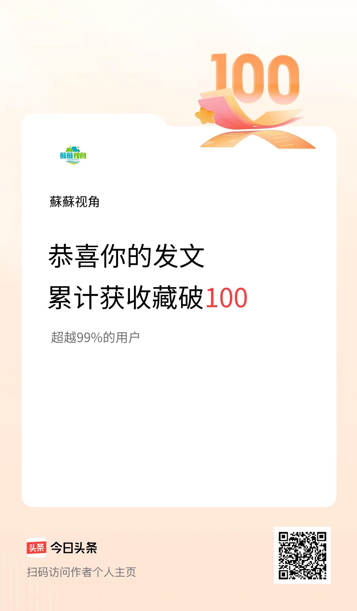我在头条累计获收藏量破100啦!