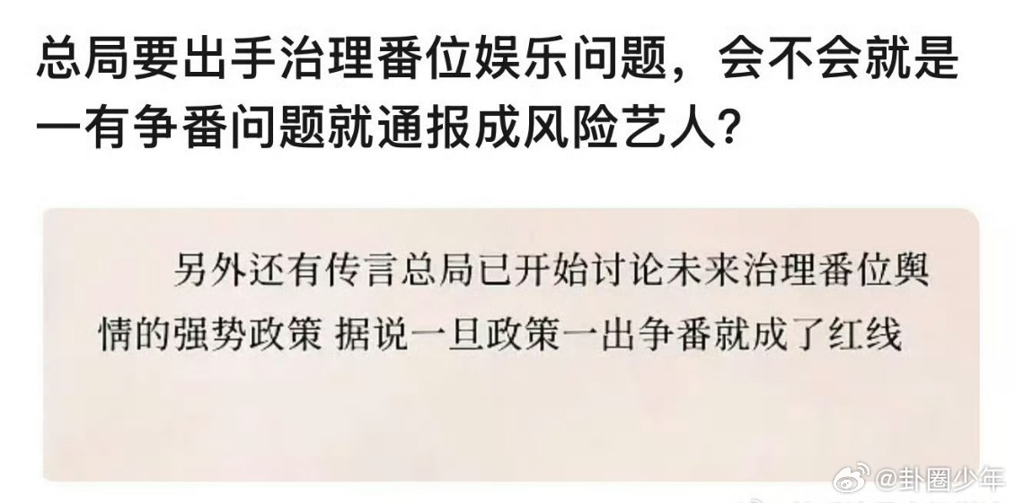 番位或将取消 从政策导向到行业呼声,取消番位的核心是遏制非理性竞争。过往不少项目因番位之争流产或口碑受损,若能落地,或许能缓解“唯番位论”的畸形生态;但如何明确署名规则、保障演员合理权益,仍需行业达成共识。
