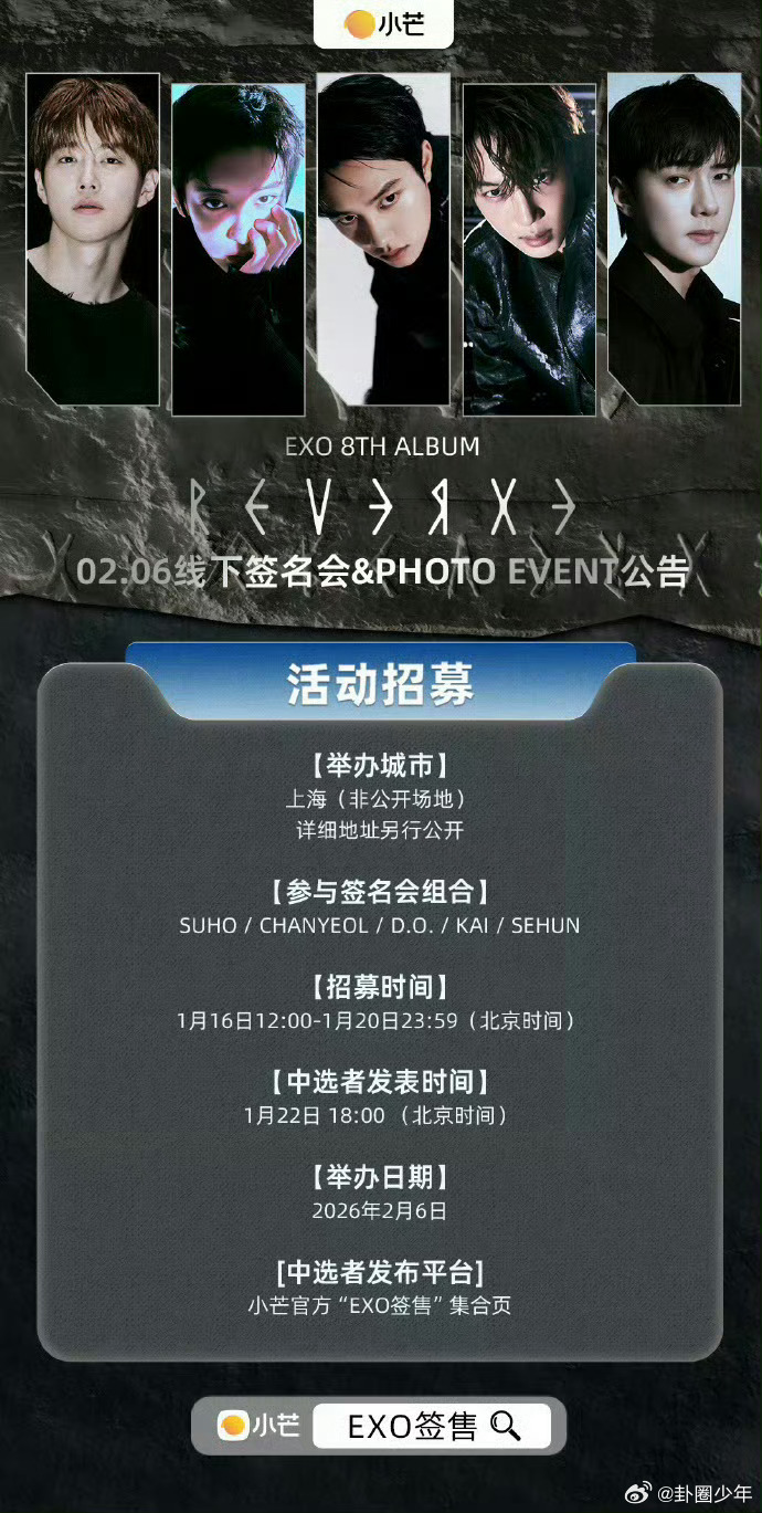 EXO上海签售有1v1合照 签售会的合影环节,是韩团宠粉文化的典型体现。从过往互动来看,成员们常以温柔态度照顾粉丝情绪,还会配合多样合影姿势,此次上海场延续这一福利,既满足了粉丝近距离接触的心愿,也让“WE ARE ONE”的初心在线下场景中落地,期待值源于双向的真诚。