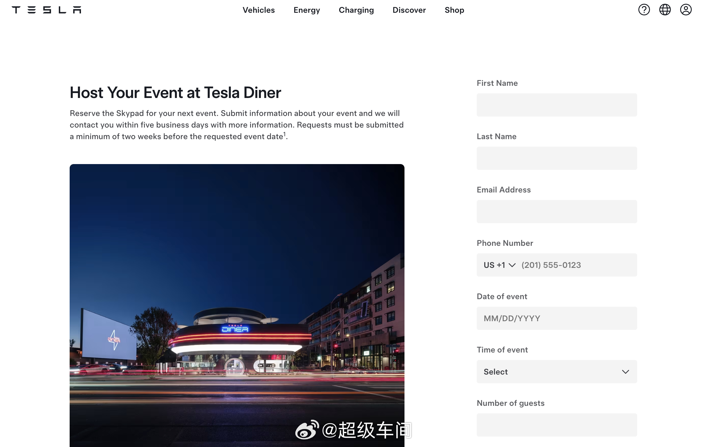 特斯拉 现已开放特斯拉餐厅空中观景台的预订服务,可在此申请举办专属活动。"提交您的活动信息,我们将在五个工作日内与您联系并提供更多详情。活动申请需至少在预定日期前两周提交。"