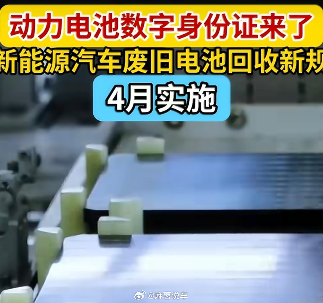 新能源汽车废旧电池回收新规4月实施这个新规来得太及时了!现在还是会有一些风险在的,有的觉得正规渠道回收价太低,转头卖去小作坊,但小作坊又容易造成污染。现在有了数字身份证,电池从生产到回收的全流程都能追溯,“车电一体报废”也能杜绝电池被私下转卖。加上明确的罚款处罚,那些不合规小作坊该没生存空间了。对车主来说,既能保障电池残值不被低估,又能放心让电池合规处理,既护了自己的权益,也为环保出了力,期待4月新规顺利落地,让回收链条更透明规范!