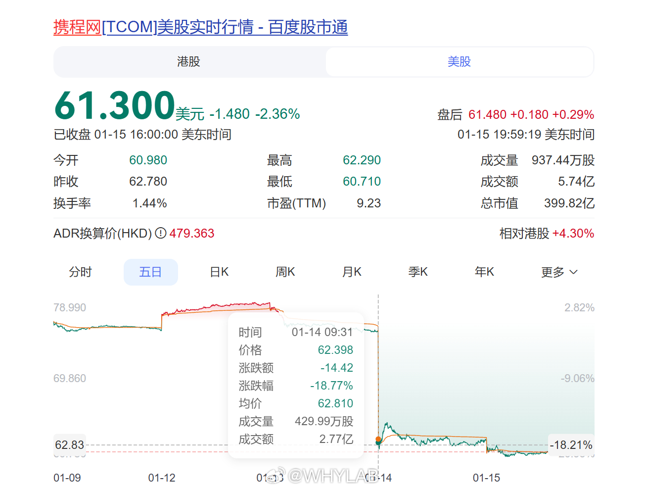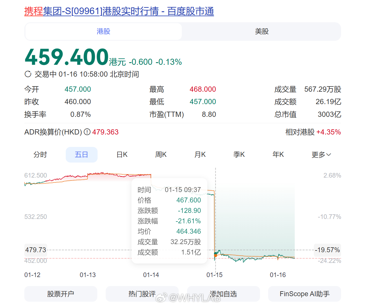 携程 一个反垄断调查,携程股价断崖式暴跌了,前两天还是 600 港元每股,现在跌到了 460,美股从接近 80 跌倒了 60,后面还要被罚款,够携程喝一壶了。