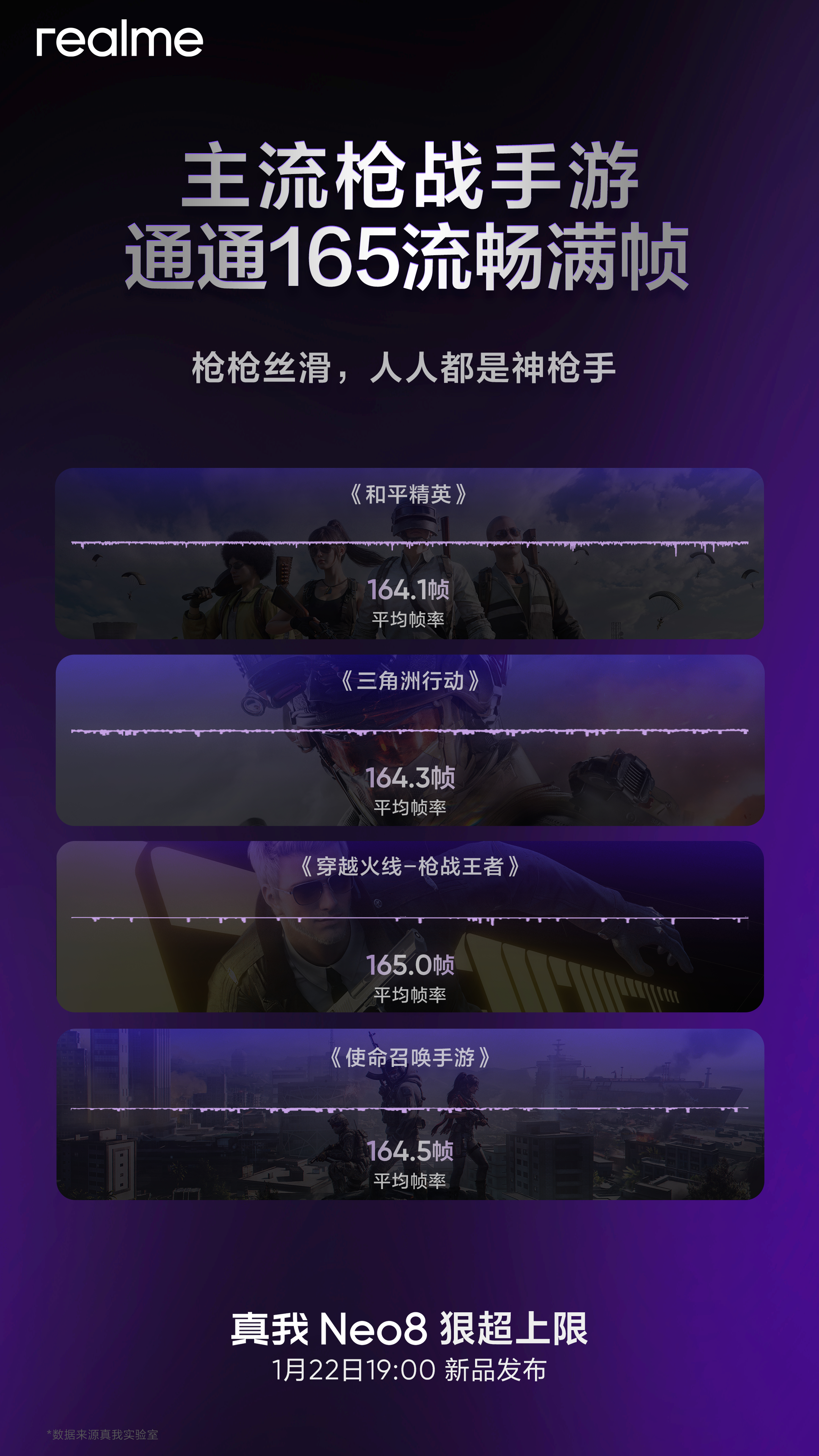 不止165Hz满帧表现,真我Neo8打造最强超高帧游戏生态!全面超高帧也更满帧!原生165超高帧《三角洲行动》《穿越火线-枪战王者》《和平精英》《暗区突围》《使命召唤手游》五大枪战手游通通流畅满帧。无生态不高刷!覆盖枪战、MOBA、竞速、格斗、音游等5大类主流电竞手游,支持30+款手游原生165超高帧。
