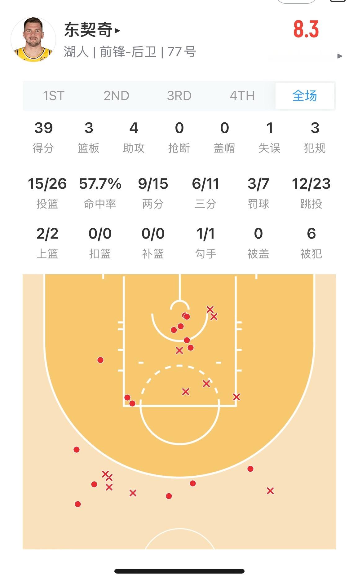 媒体发布湖人今天比赛情况东契奇首节就砍下19分 帮助球队取得领先勒布朗第2节接管