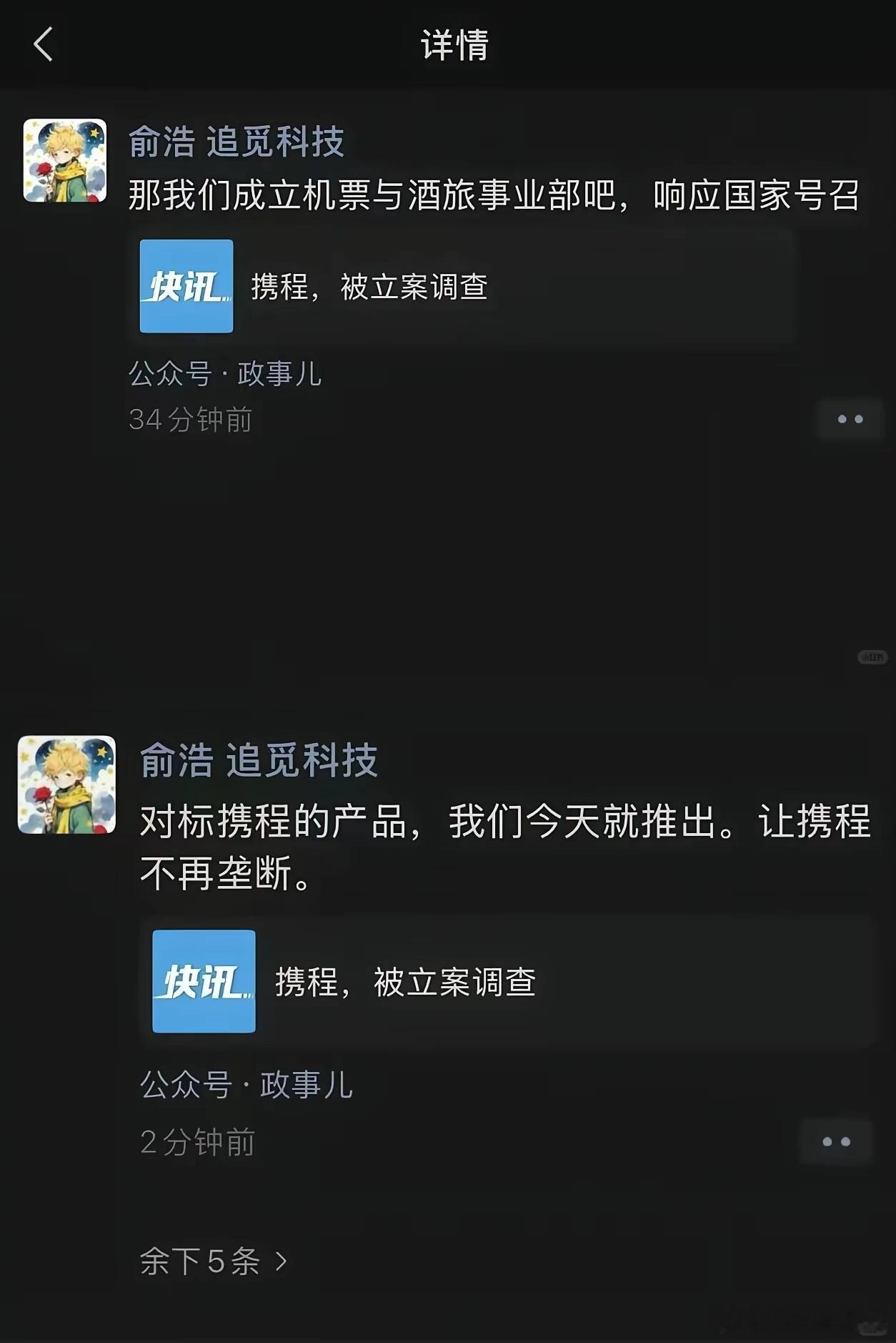 从豪华超跑,到互联网产品,追觅CEO俞浩最近确实有点天马行空。其实老板吹吹牛没关系,关键就是他下面的管理层能不能拿出实际解决方案?不是简单“舔”,然后把压力全部下放给下面的人就完事了。后面两张是聊天截图,相对来说比较容易伪造,我个人是存疑的。反正牛已经吹出去了,下面看追觅能实现到什么程度了,你看好追觅科技的跨界项目吗?上一个做扫地机器人的造车,好像还行。