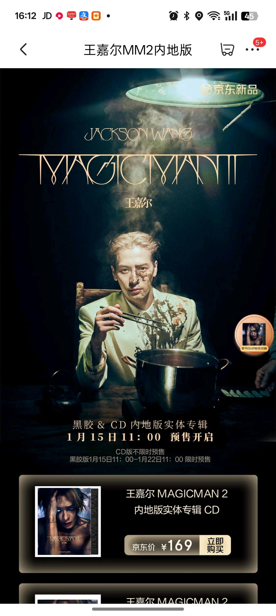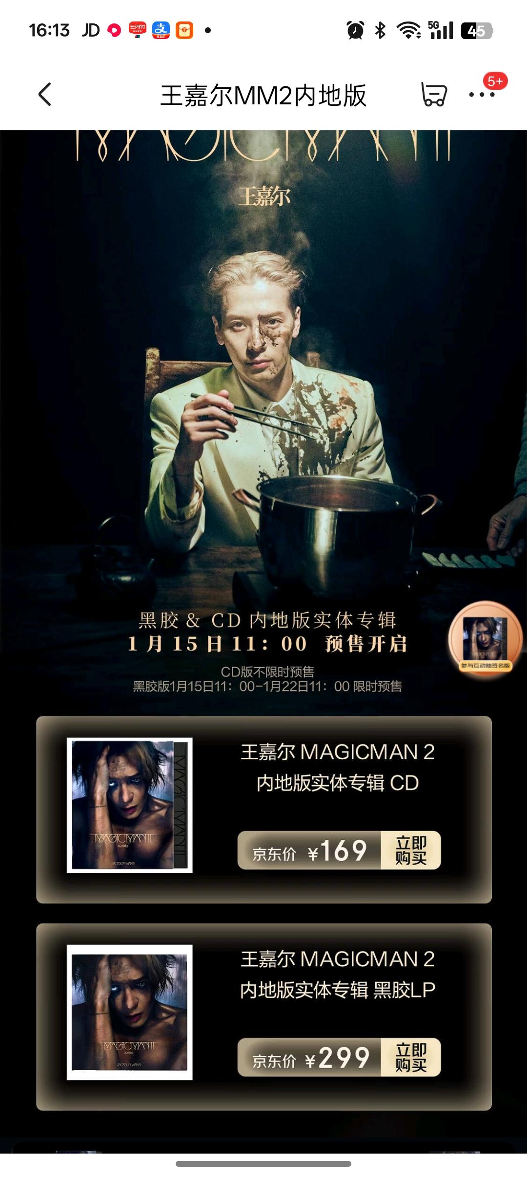 宝子们速速集合!王嘉尔《MAGICMAN 2》内地版实体专辑在JD独家首发预售啦,真的等了好久终于等到!CD版169元不限时预售,啥时候冲都来得及,黑胶LP版299元是1月15日11点到22日11点的限时福利,手慢无! 打开JD搜“王嘉尔MM2上新”就能直接下单,而且去新品频道参与尖货抽签,还有机会抱走王嘉尔亲签版!作为死忠粉已经火速锁单,不管是收藏还是听感都超可,家人们别犹豫,一起为嘎嘎的新专辑打call呀~ MM2上新 王嘉尔