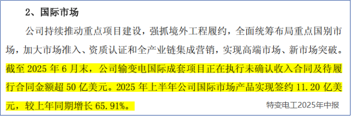 不仅如此,2025年中报显示,公司输变电产业在国内市场签下约273亿订单,国际市场也签下11.2亿美元订单。