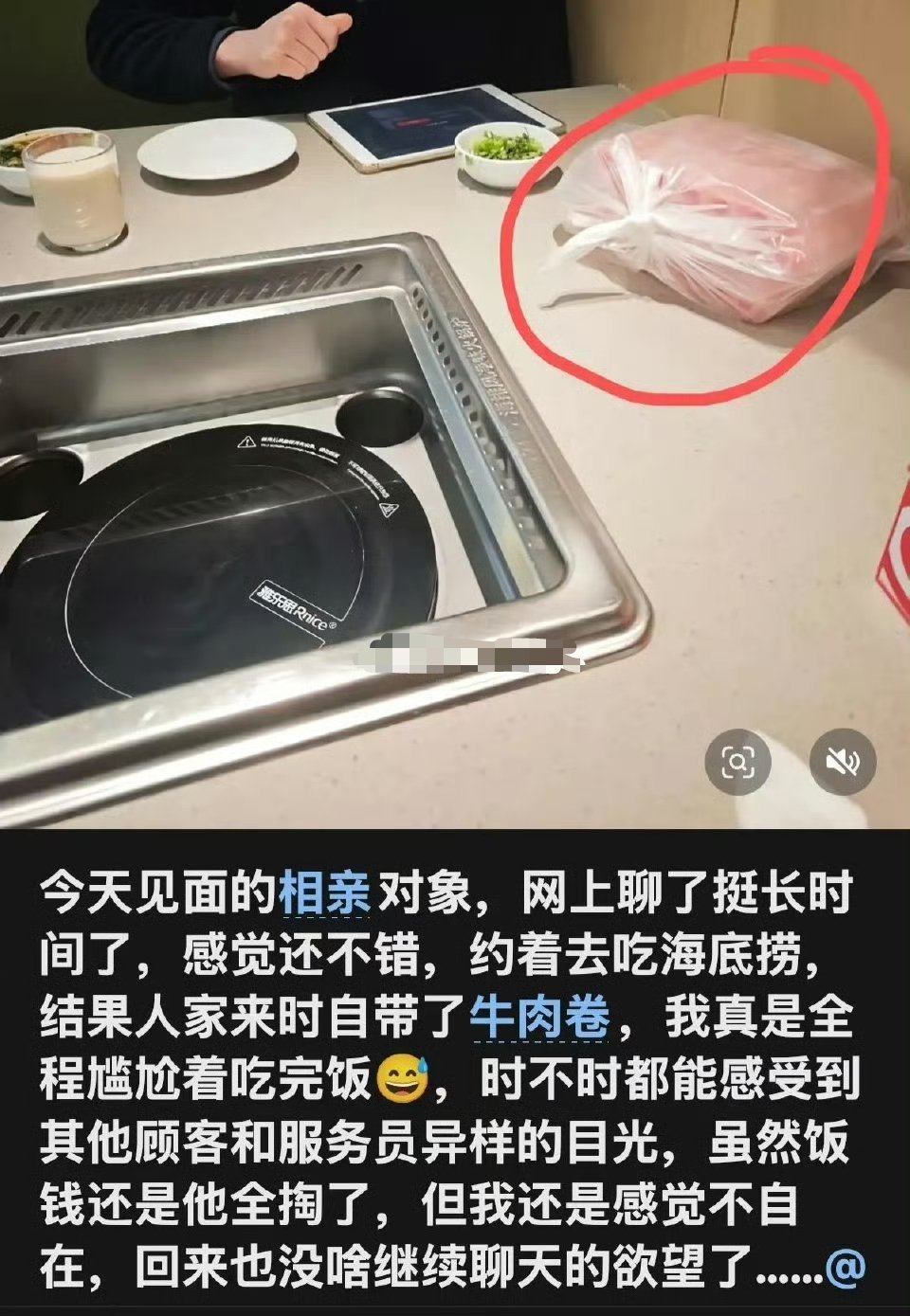 男人相亲吃海底捞自带牛肉卷很下头吗?