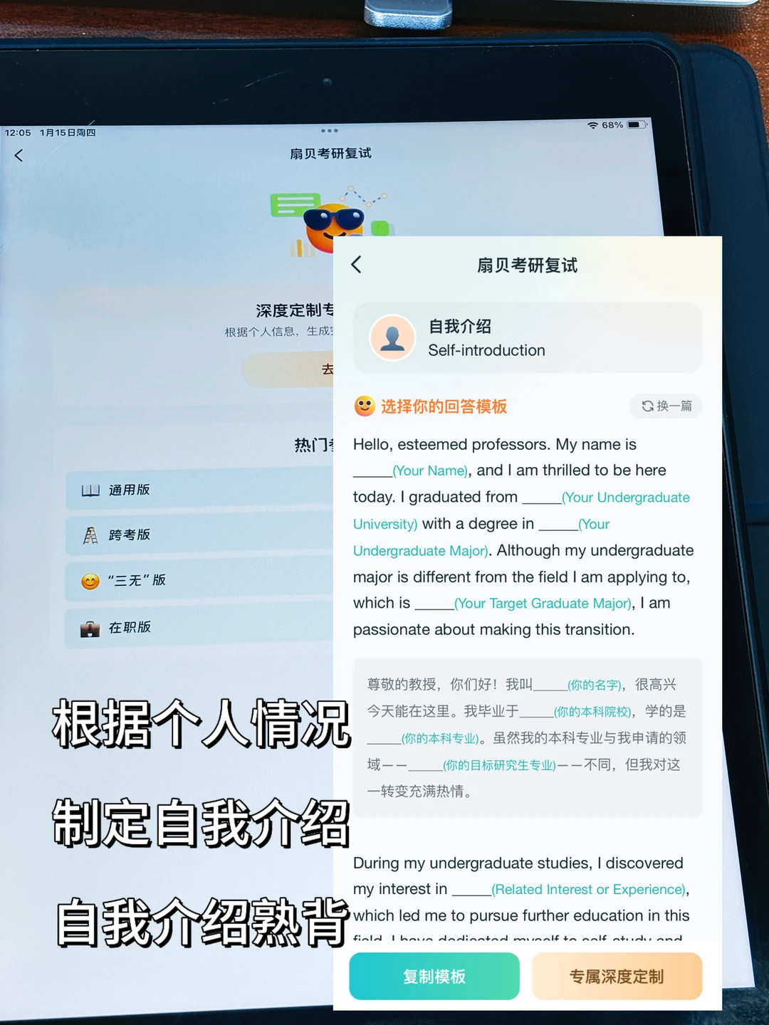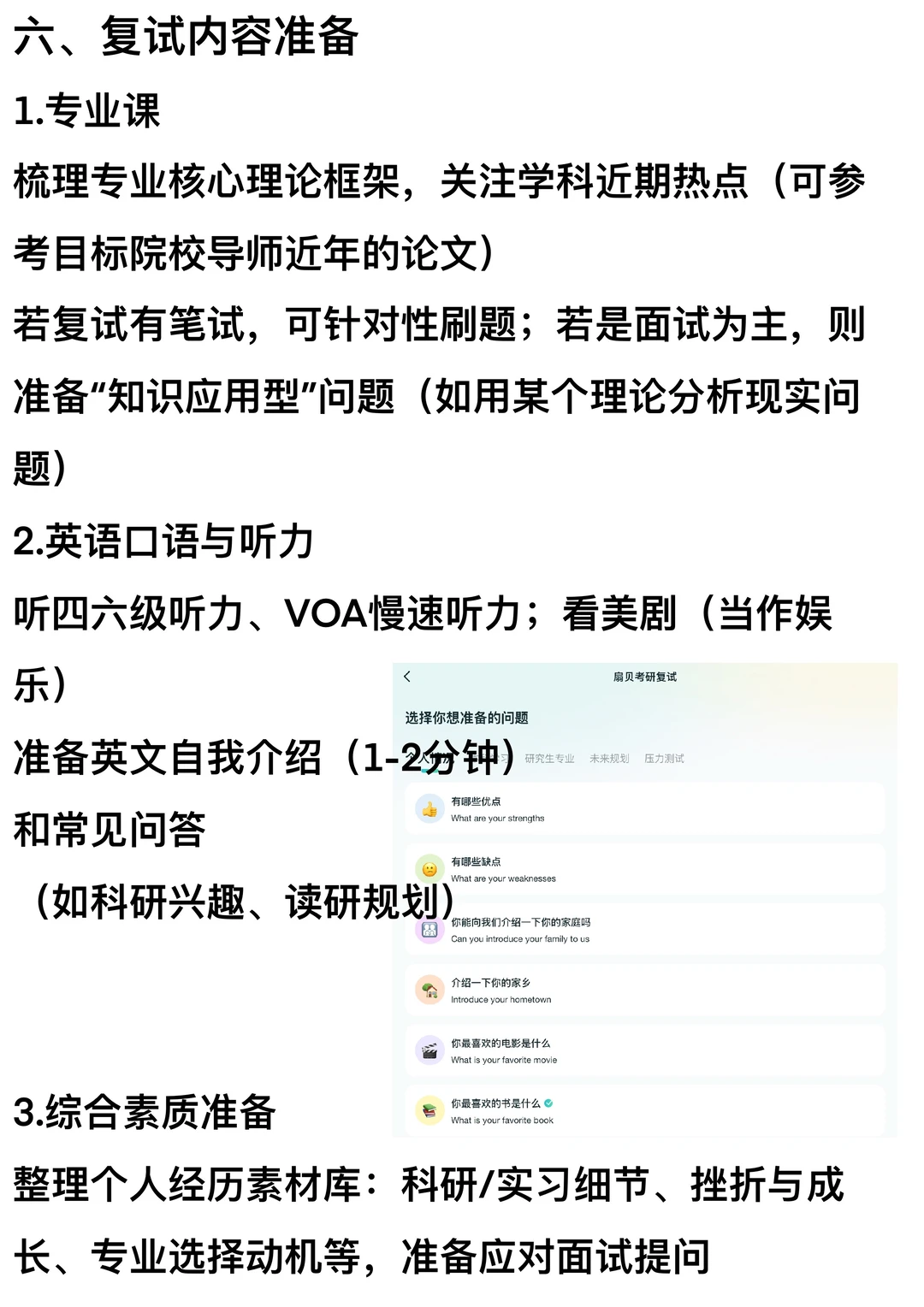 整理个人经历素材库:科研/实践细节、挫折与成长、专业选择动机等,准备应对面试提问。