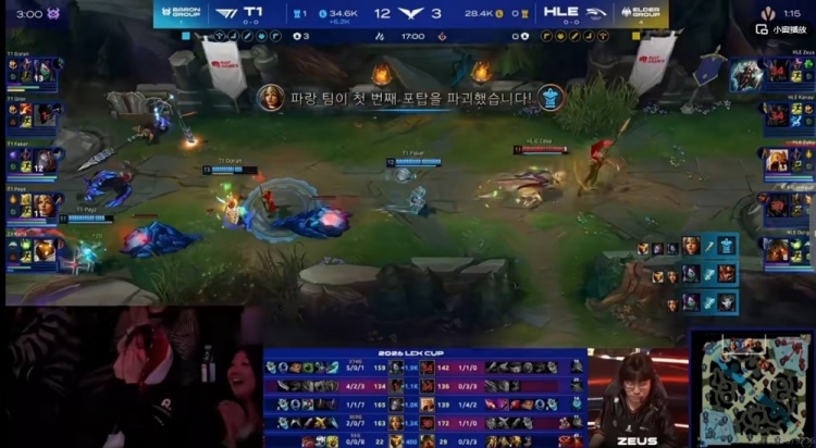 第二局:HLE上野合砍0-8Faker塞拉斯+Oner赵信勇猛无敌T1扳平比分