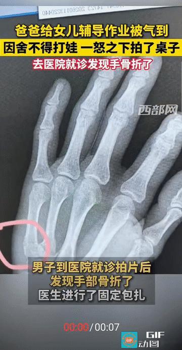 “辅导作业果然是家长的酷刑!”山东,爸爸在家辅导女儿写作业,看着作业本上半小时才挤出的18个字,火气一下上头实在忍不住,但又不舍得打女儿,只得手掌狠狠拍在桌子上,结果桌子完好无损,自己的手却打上了石膏!网友:辅导作业的尽头是骨科! 来源:【大象新闻】 这位父亲像往常一样下班后辅导孩子写作业。明明很简单的一件事,可每天就像是打战一样,本来以为习惯了,谁知看到孩子半小时只写了18个字,作业进展缓慢让,还是让他越来越焦躁! “没舍得打孩子,一拳头捶在了桌子上。”孩子妈妈这样描述当时的情景。随着“啪”的一声,钻心的疼痛从手掌传来,医院检查结果显示为右手第5掌骨骨折! 父亲的手掌迅速肿胀,需要立即打石膏固定。躺在病床上的他坦言:“现在想想又后悔又好笑,不该这么冲动。” 家长们情绪失控的背后是多重压力的叠加。工作一整天的父母,晚上还要变身“家庭教师”,疲惫状态下更容易情绪失控! 教育焦虑的传递也不容忽视。在“不能输在起跑线上”的社会氛围中,家长往往将自身焦虑投射到孩子身上! 有家长坦言:“有时候真是忍不住,这一拳是打在桌子上,要是打在孩子身上,麻烦就大了。” 这种情绪爆发后的后怕,反映出父母在爱与焦虑间的挣扎! 有专家建议,当感到愤怒情绪上升时,采用“暂停策略”。可以告诉孩子:“爸爸/妈妈现在需要冷静一下,我们五分钟后再继续。” 离开现场深呼吸,调整状态后再继续辅导,比硬撑到爆发点更为明智! 把大任务拆解为小步骤,每完成一步给予积极反馈,也能减少对抗! 我们要明白辅导作业的终极目的不是完美无错的作业本,而是培养孩子的学习能力与解决问题的信心!