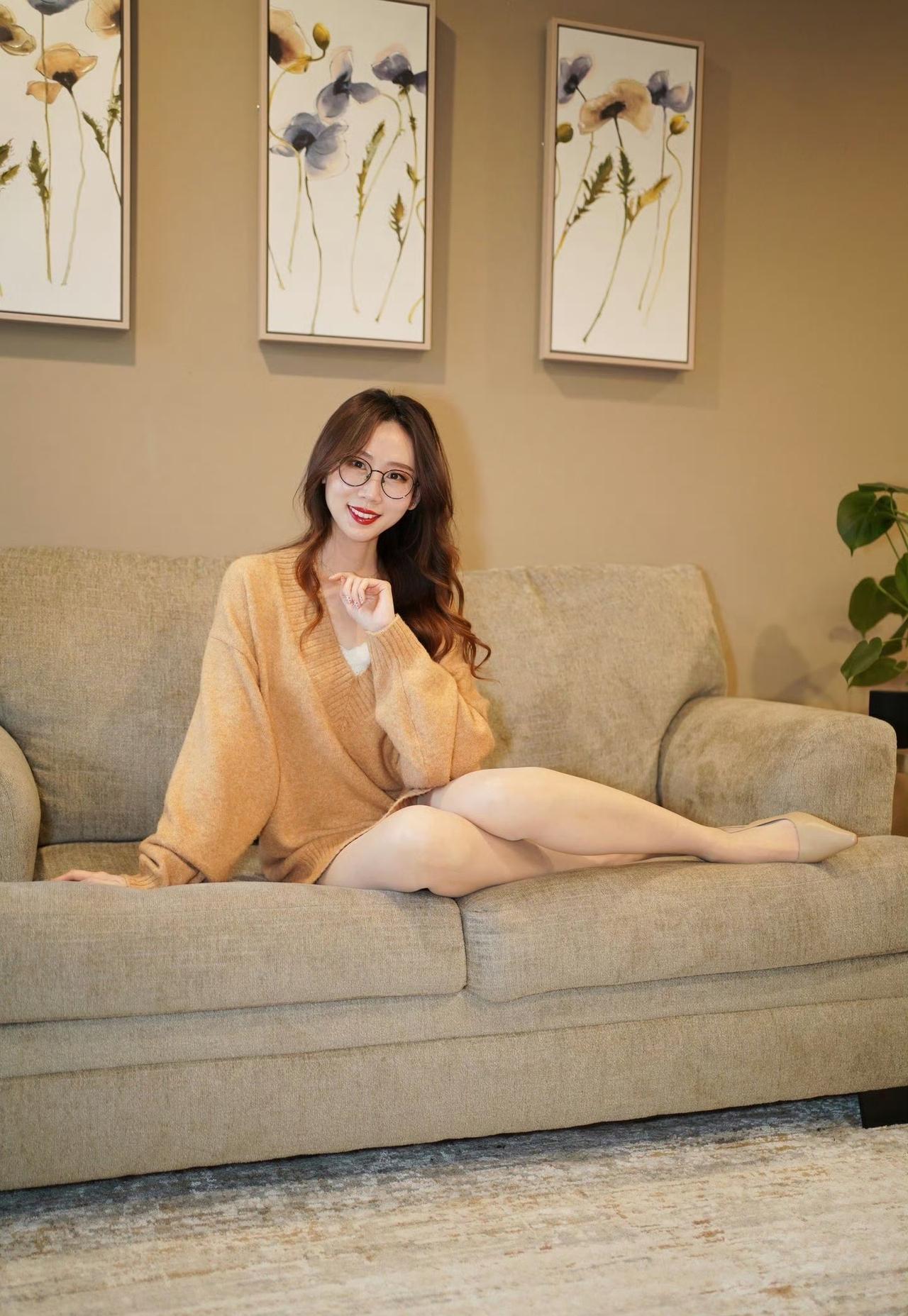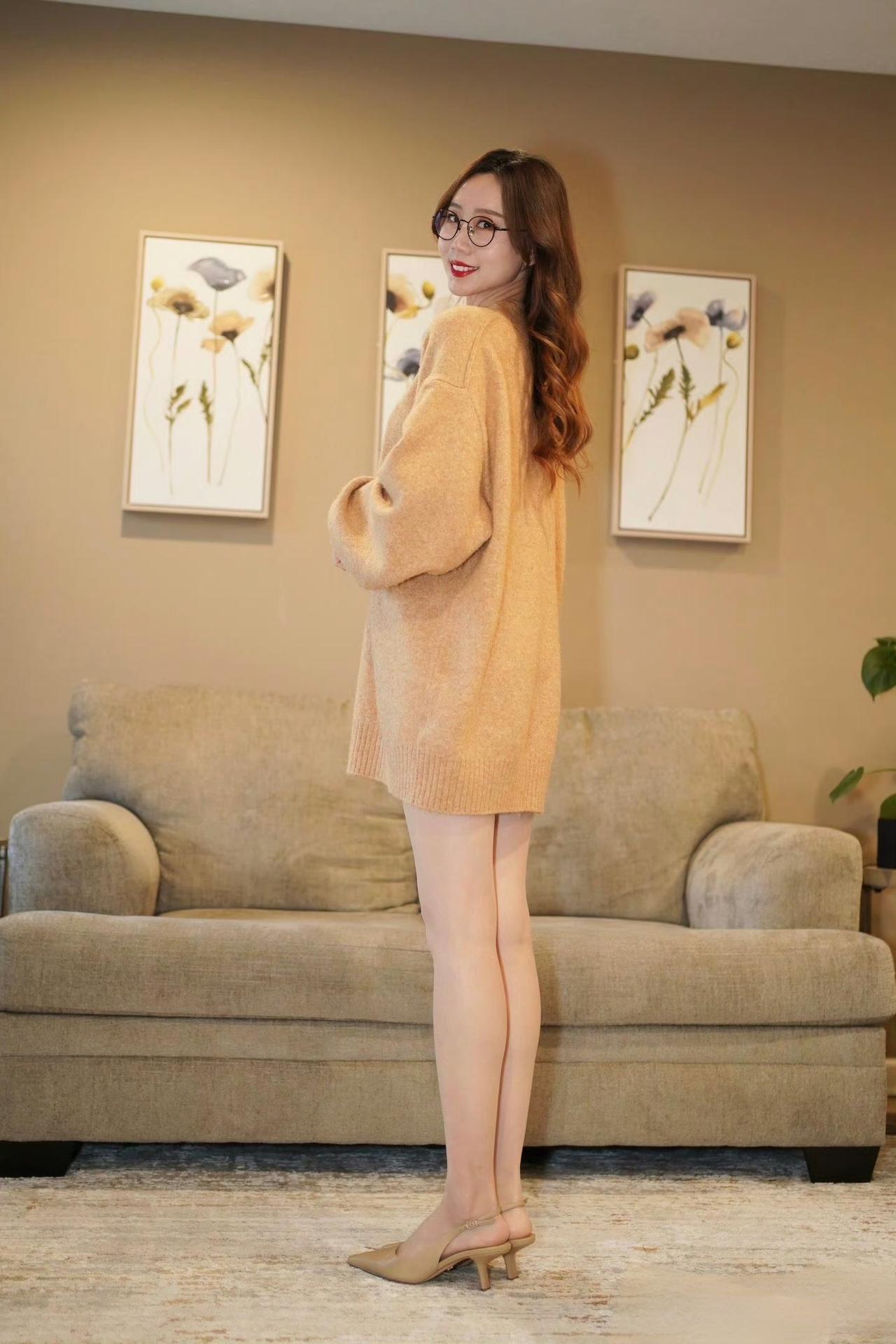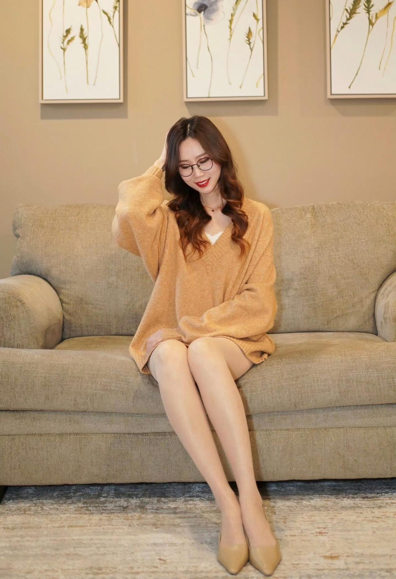 一件宽松V领毛衣搞定秋日宅家穿搭!燕麦色调温柔又显白,下衣失踪的穿法让双腿看起来更修长,搭配肤色丝袜和细高跟,简约却不单调。 戴上眼镜瞬间切换知性模式,不管是拍照还是宅家追剧都适配,慵懒又不失精致感~你的宅家本命穿搭是什么?