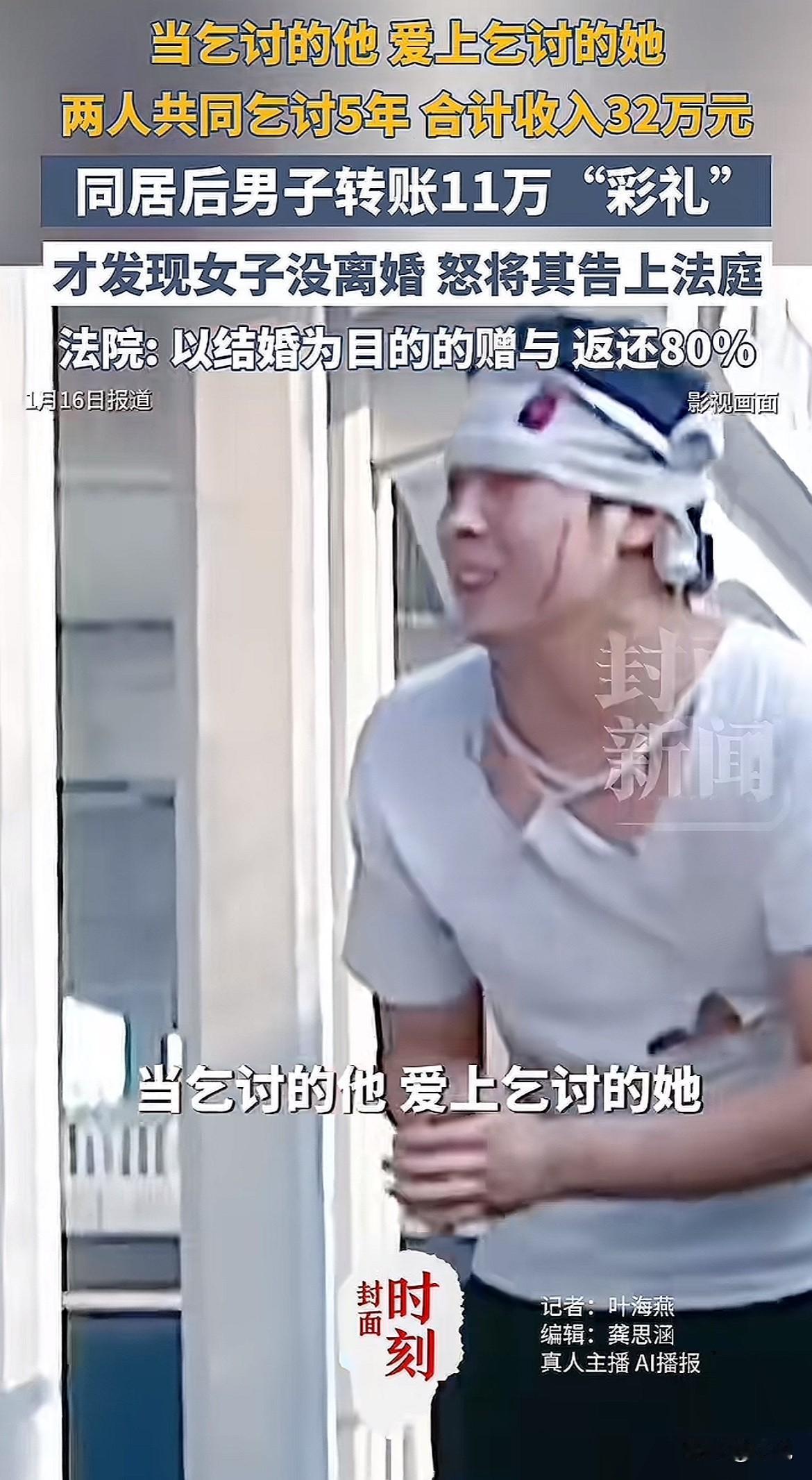 2020年10月,在青海西宁的街头,一位从贵州来的彭先生,遇到了另一位从宁夏来的张女士。俩人都是靠路人施舍过日子,同是天涯沦落人,这一来二去就熟络了,谈起了恋爱。彭先生自己是离了婚的,张女士也说跟前夫分开了,俩人干脆就以夫妻的名义,一起搭伙过日子,继续在街头乞讨。 这一搭伙,就是整整五年。你还别说,这“生意”俩人合伙干得挺“红火”。风里来雨里去,从2020年到2025年,他们靠这个,一块儿竟然挣了32万块钱。平均算下来,一年六万多,一个月也有五千多,这收入可能比很多辛苦上班的人还要强一些。其实吧,这也不稀奇,有调查就说,有些职业乞讨的人,收入确实不低,在有些人流量大的地方,一天几百上千都可能,甚至还有“年薪”三十万的说法。 日子久了,感情深了,就谈到了结婚。张女士开口向彭先生要二十多万的彩礼。到了2024年7月,彭先生前前后后给张女士转去了11万1900块钱,这估计是他那32万里攒下的很大一部分了。钱给了,婚还没结成,俩人的感情却先出了问题。更让彭先生晴天霹雳的是,他后来才发现,张女士跟原来丈夫的婚姻关系,压根就没解除,人家法律上还是夫妻呢。 这下彭先生受不了了,感觉自己被骗了,感情和钱都打了水漂。分手之后,他找张女士要钱,对方不给,他一气之下就把张女士告上了法院,要求返还那11万多。 到了法庭上,双方说法完全不同。彭先生认为,这钱是为了结婚给的彩礼,现在婚结不成了,对方又隐瞒了已婚的事实,这钱当然得退。张女士呢,一口咬定这根本不是彩礼。她说那32万是两个人一起乞讨挣的,是共同财产,而且彭先生转给自己的那11万,算是那笔共同收入的一部分,再加上自己照顾对方生活的“保姆费”。 法院是怎么看的呢?法院最后站在了彭先生这边。法官认为,张女士拿不出证据证明那11万是“共同所得和保姆费”。而彭先生这边,转账记录、聊天记录这些证据很清楚,能证明转钱就是为了结婚。最后,宁夏的法院判决,张女士得返还这笔钱的80%,也就是89536块钱给彭先生。张女士不服上诉,二审法院在2025年9月维持了原判。 这事儿吧,说起来挺让人唏嘘的。两个在最底层互相取暖的人,最后却因为一笔不小的钱对簿公堂。它撕开了一个很多人不了解的口子:乞讨,在今天可能已经变成了一种心照不宣的“职业”。有学者研究就说了,乞讨的人不一定是真穷得活不下去了,原因五花八门,很多人就是把这当成一个快速挣钱的营生。甚至有人开着宝马去“上班”,或者用骗来的钱在老家盖起别墅。这种“职业化”的乞讨,消费的是社会的善意,最后伤害的是那些真正需要帮助的人。 从法律上讲,乞讨本身不算违法,它算是个人选择的自由。但这种自由不是没边界的,不能骗人,不能强要,也不能扰乱公共秩序。像这起案子里的张女士,如果她真的隐瞒婚姻状况来收钱,那可能就涉及到诚信问题了。法院的判决,说到底也是在给这种基于错误认识的赠与行为“纠偏”。 回过头看,这五年他们攒下的32万,像一面镜子,照出了街头世界的复杂。这里面有生存的艰辛,也可能有对更好生活的简单渴望,但最终,没能绕过人性里那些关于信任和金钱的考验。一场街头相遇,始于同病相怜,终于法庭相见,只留下一地鸡毛和一个让人感慨的故事。