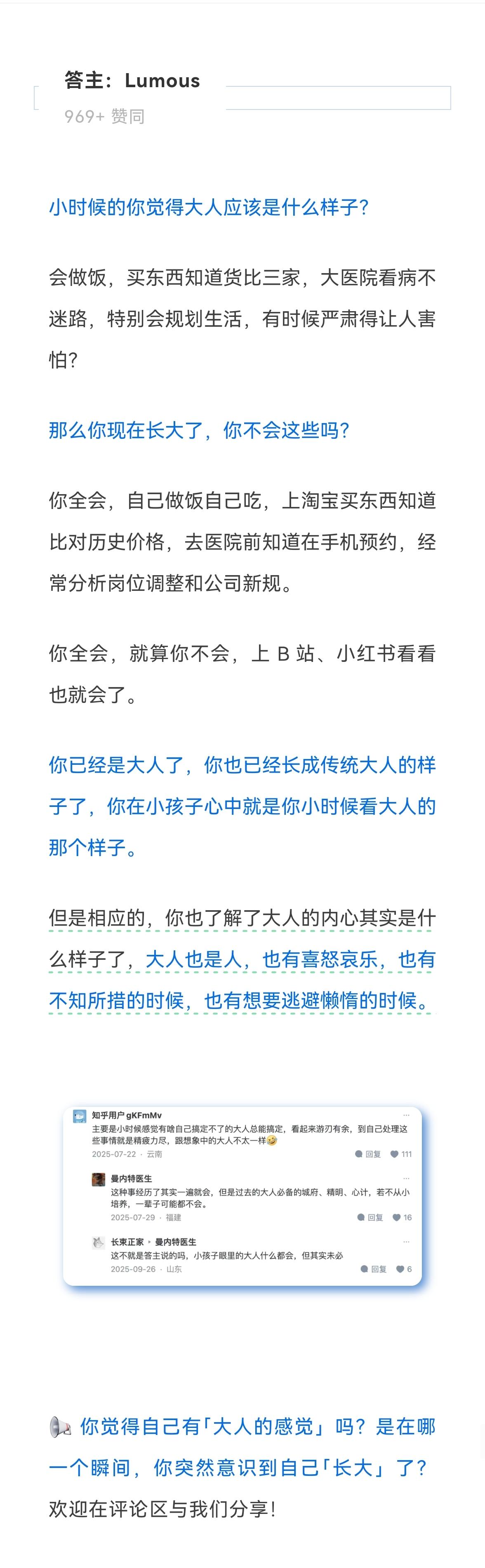 现在的成年人,为什么都没有“大人”的感觉? 以前的大人,16岁打拼成家,20多岁已是家里顶梁柱,成熟可靠、经验丰富、给孩子们遮风挡雨。 可现在这代人,22岁才大学毕业,眼里透露着清澈的愚蠢;25岁还没对象,终日忙着刷短视频玩游戏;30岁没事业没房子的比比皆是,生活不易,还要靠父母接济…… 那么,是我们这代人拒绝长大,拒绝成为大人吗? 时代变了,大人的概念也随之变了。 以前的大人在简单环境中成长,只要能为家人孩子提供一日三餐、遮风挡雨,所以你看,这代人的“长不大”,其实是种画风不同的“进化”。 如今社会竞争激烈,生活成本更高,成功的标准也与以前大为不同。 以前大人愁的是饭桌,现在咱们愁的是屏幕这头到那头的精神内耗。 表面看着是“大人,时代变了”,内核可能是——这届人类,正在用更长的“新手村”时间,加载一个超高难度的成年版本。 压力大中年人