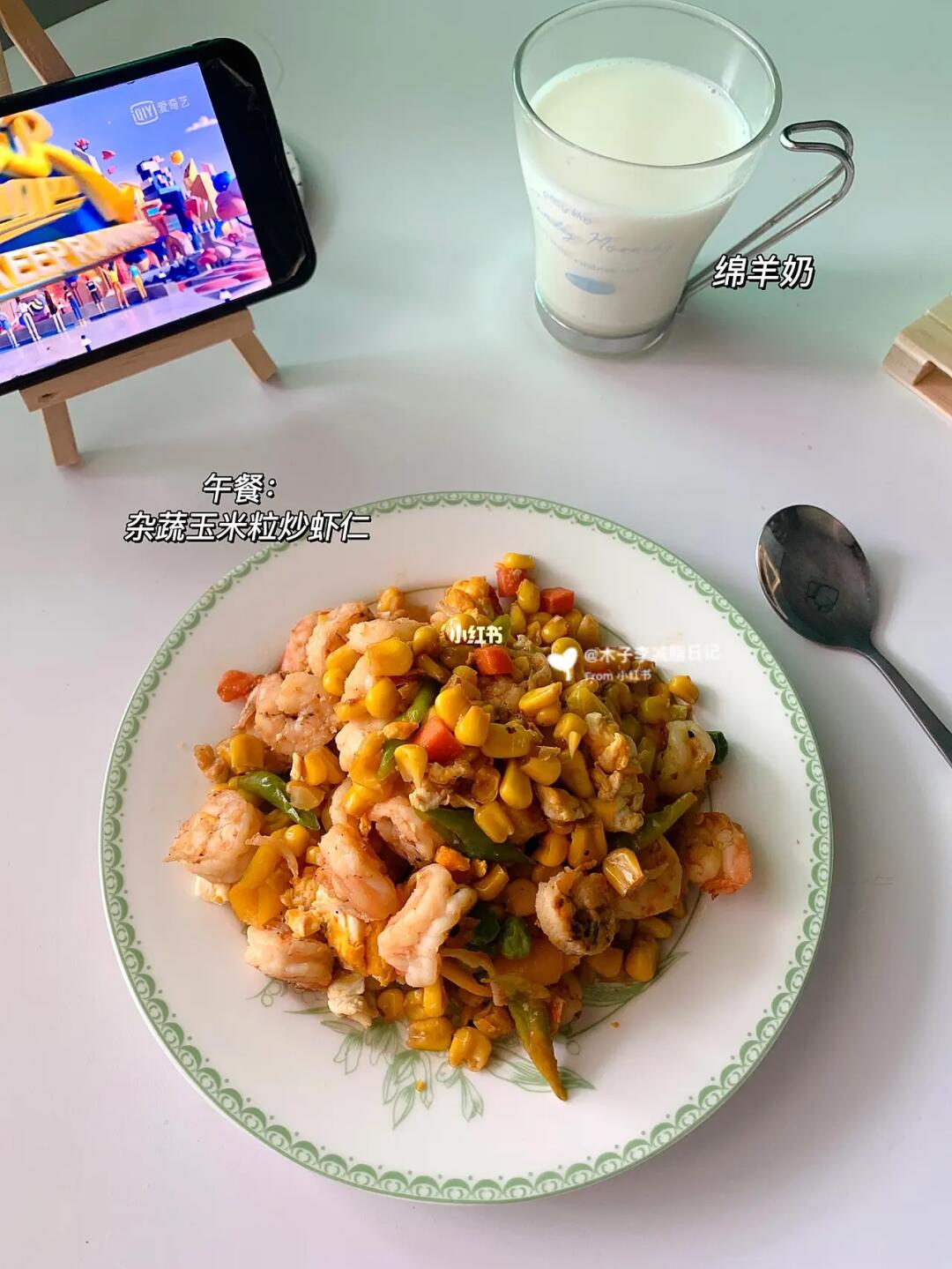 2022.7.4|减脂403天| 🔹初始体重120斤 🔸目标85斤 🔹现重89斤 ———————————————————— ☀️早餐:蓝莓松子碱水|煎芦笋|葡萄|千禧果|肉肠|鸡蛋🥚|奶蓝拿铁 🥣午餐:杂蔬玉米粒炒虾仁|绵羊奶 💧喝水量2000ml➕ 🏃♀️运动:不动 ———————————————————— 把时间分给健康饮食,分给良好睡眠,分给你对世界的热爱,你会感觉到平淡生活中的平静,焦虑与不安都会散去~