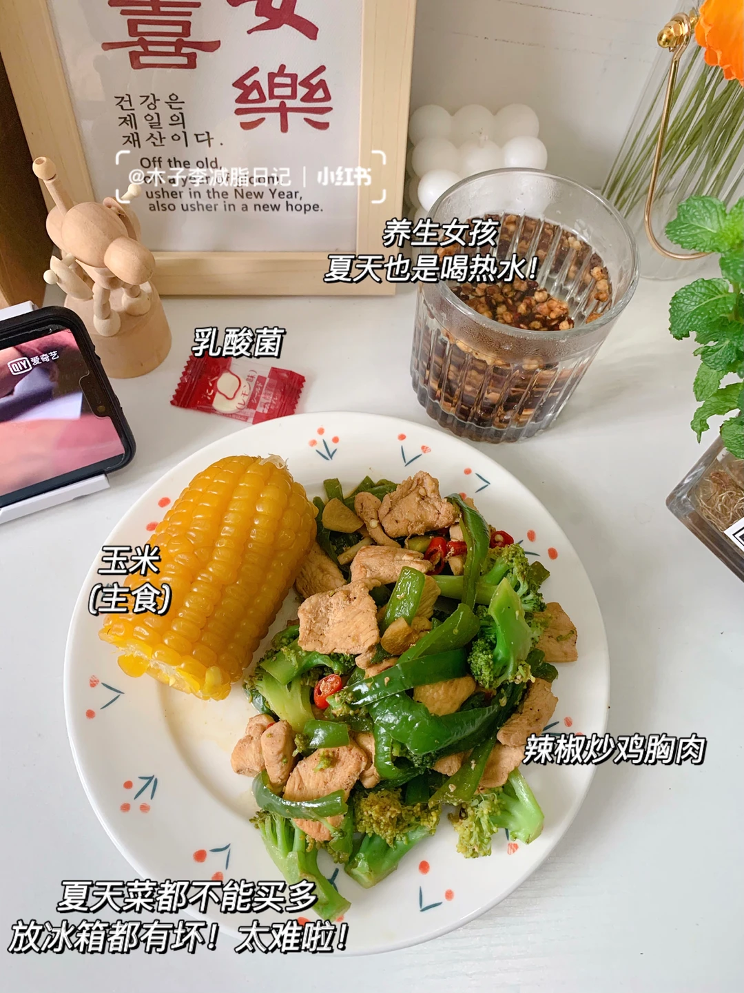 🥙午餐:辣椒炒鸡胸肉➕薏米茶➕玉米➕乳酸菌