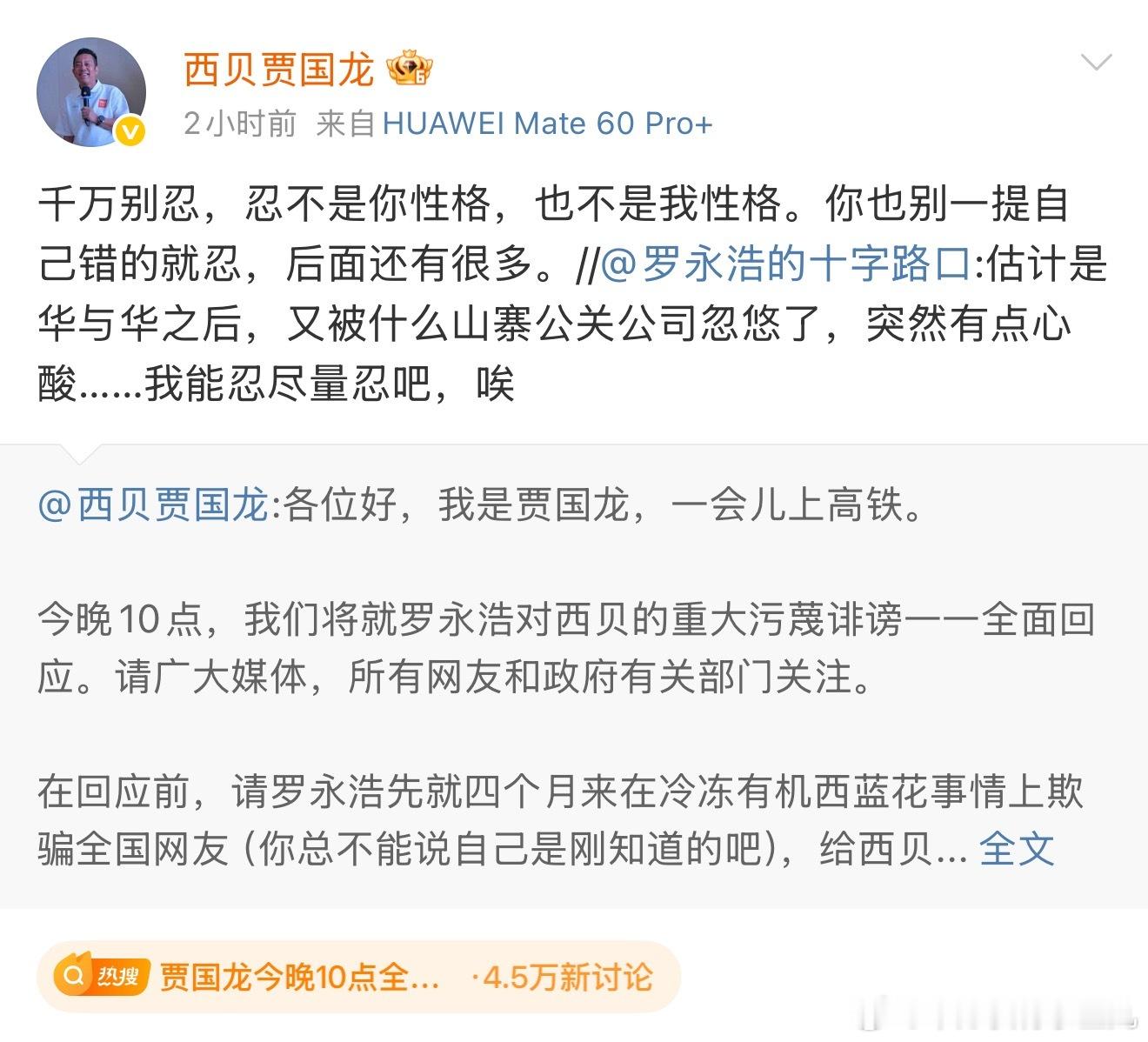 贾国龙让罗永浩千万别忍 还有十分钟 小板凳准备好了!吃瓜🍉看戏~ 我看看能玩出