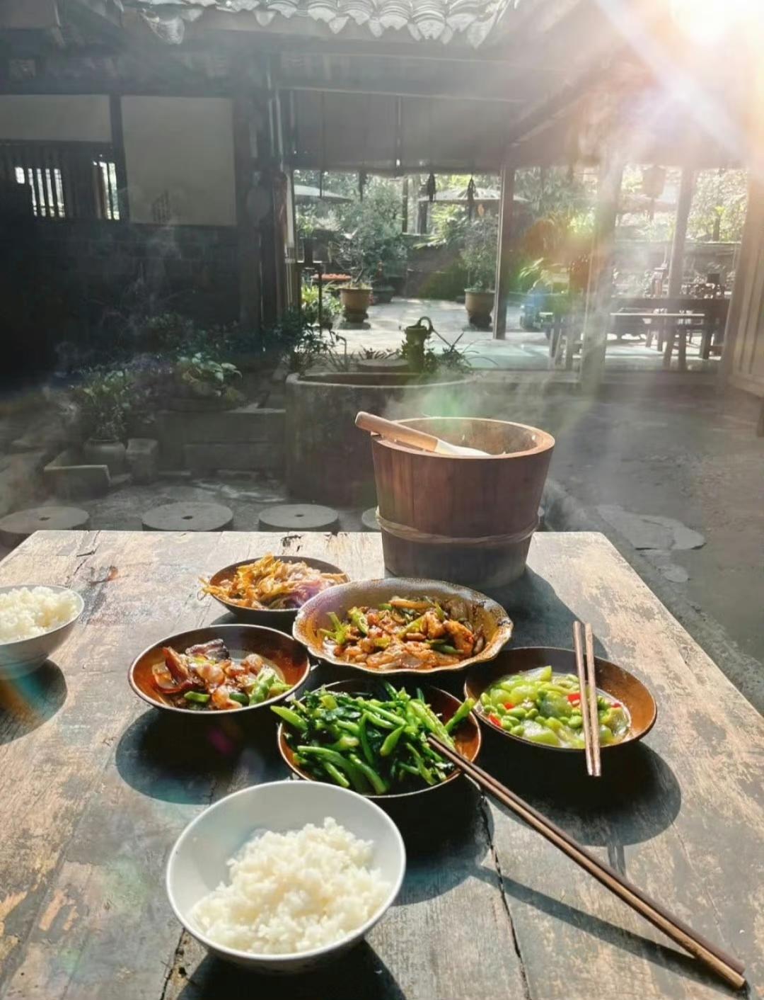 “ 斜阳入户时,烟火起茅茨。一饭清欢足,闲观月上枝 … ”